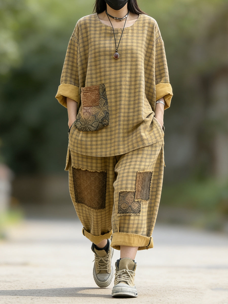 Damen Frühling Retro Karo-Patchwork-Anzüge