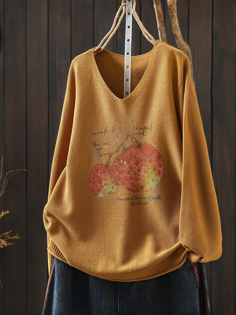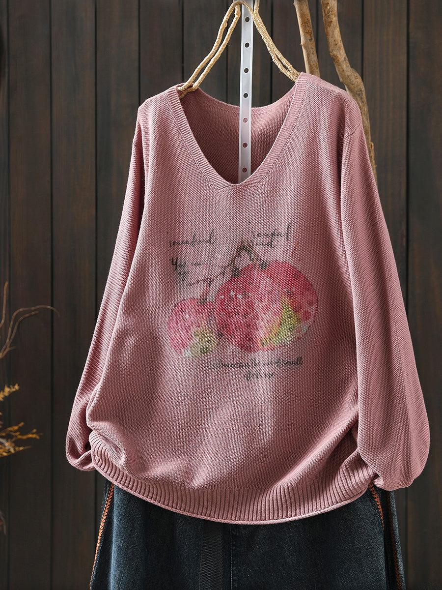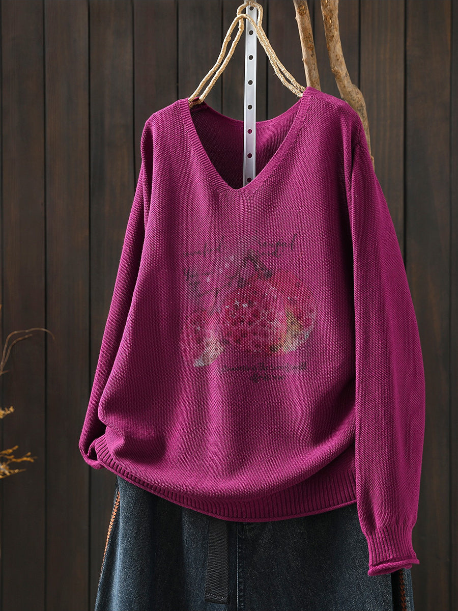 Damen-Strickbluse mit Frühlingsmuster und V-Ausschnitt