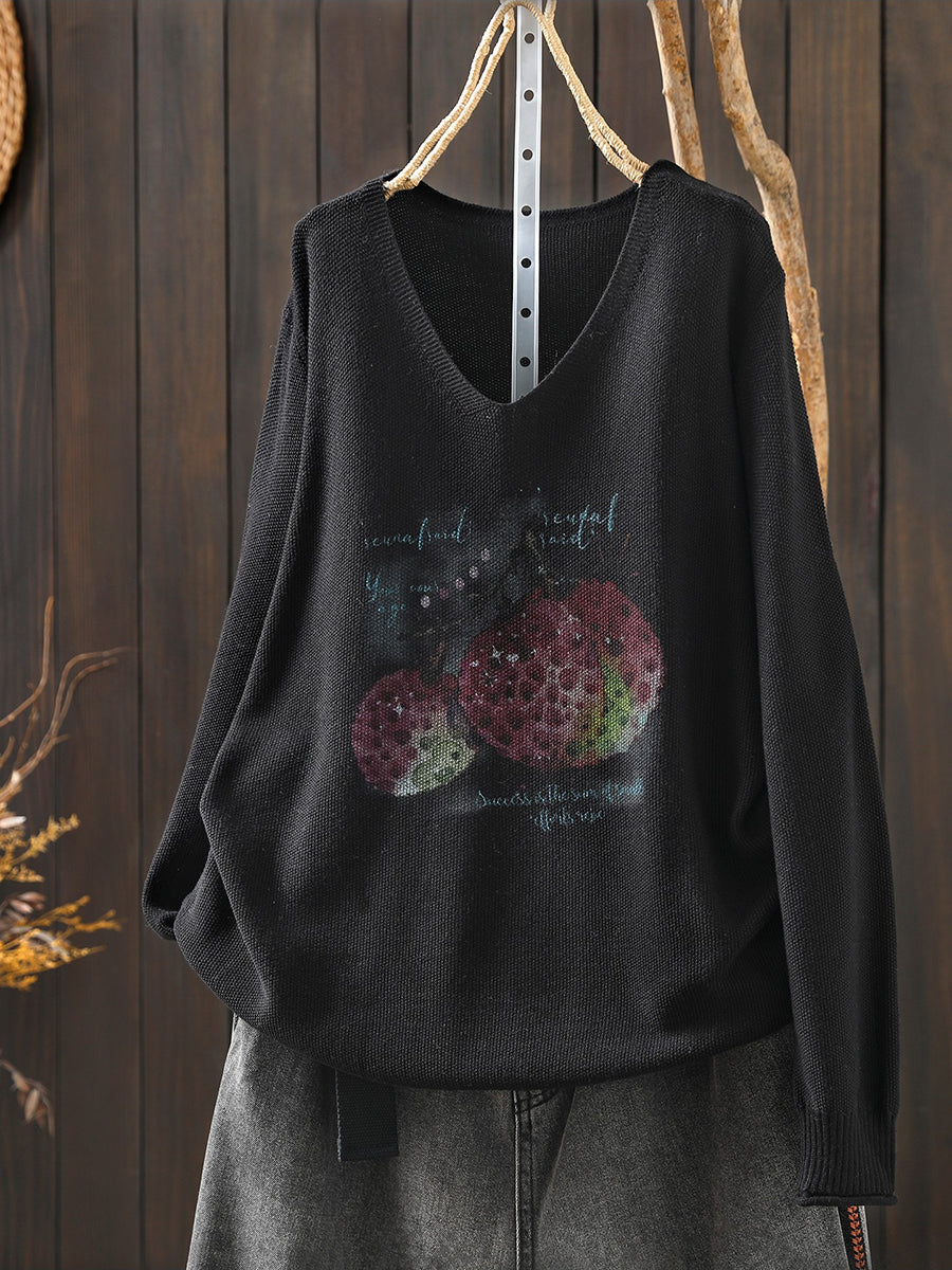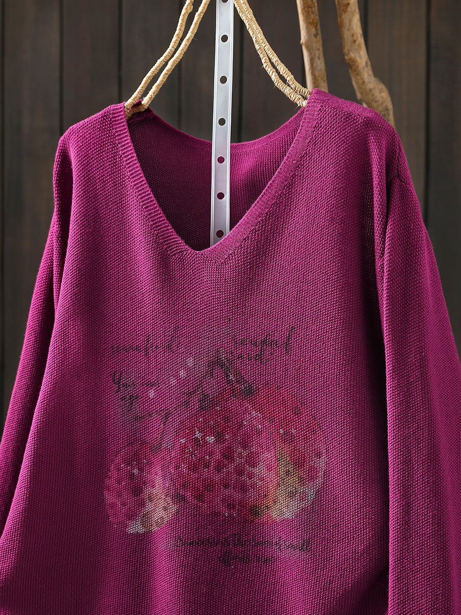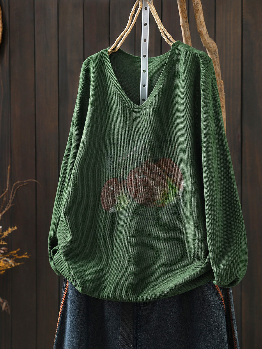 Damen-Strickbluse mit Frühlingsmuster und V-Ausschnitt