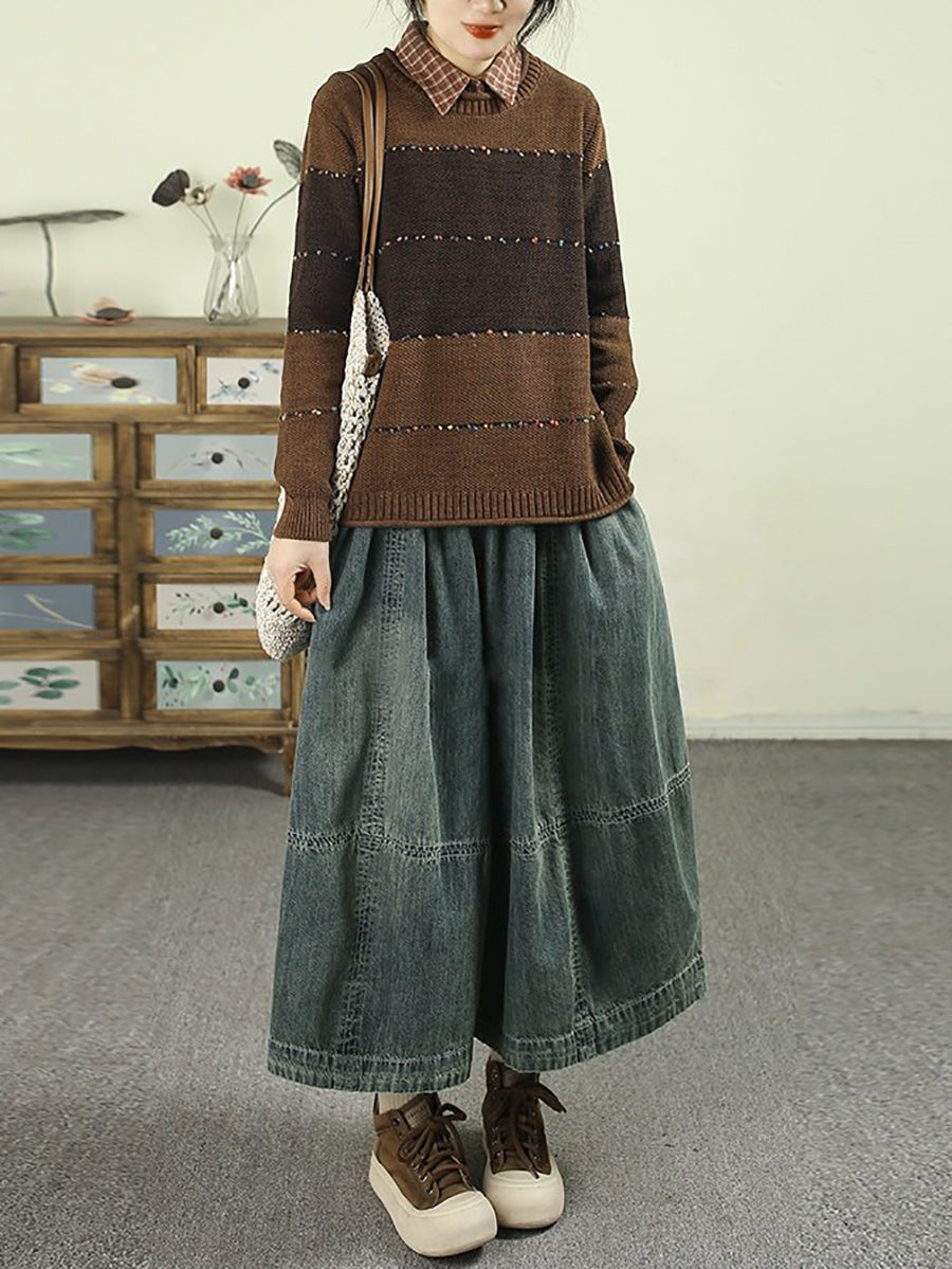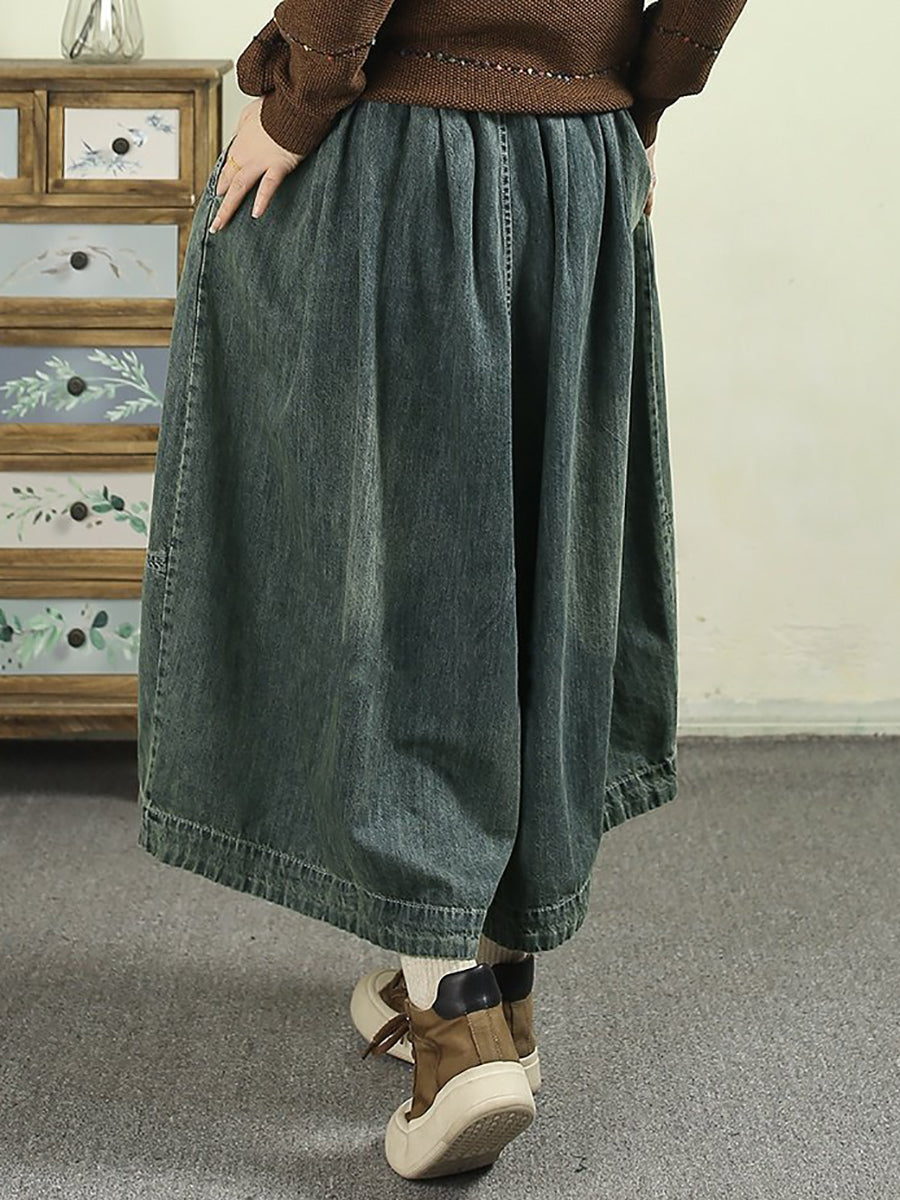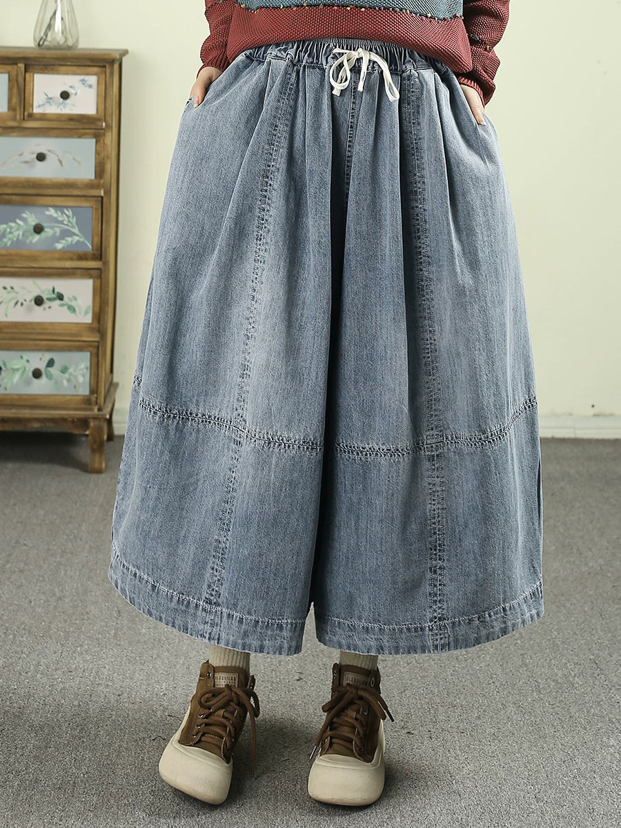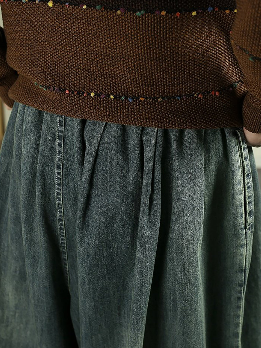 Damen Frühlings-Vintage-Denimhose mit weitem Bein