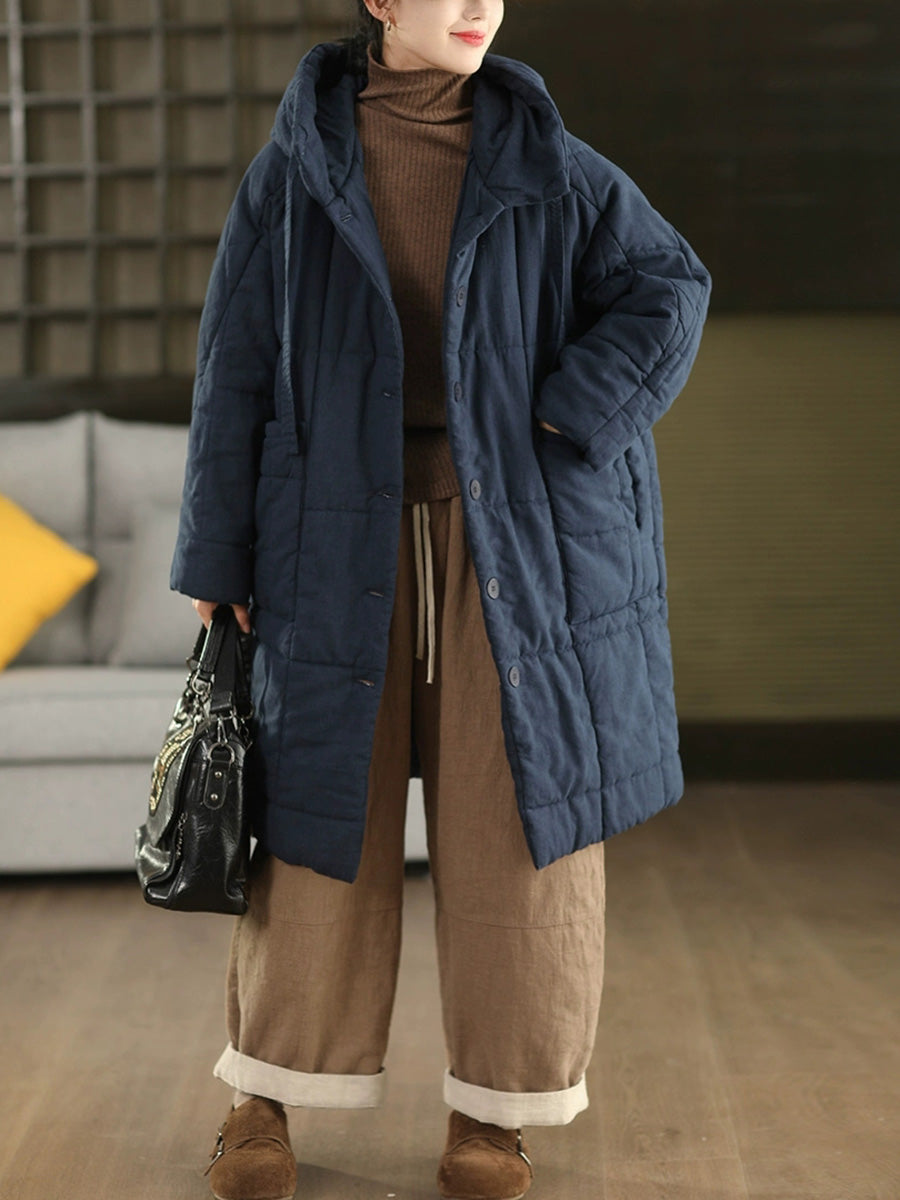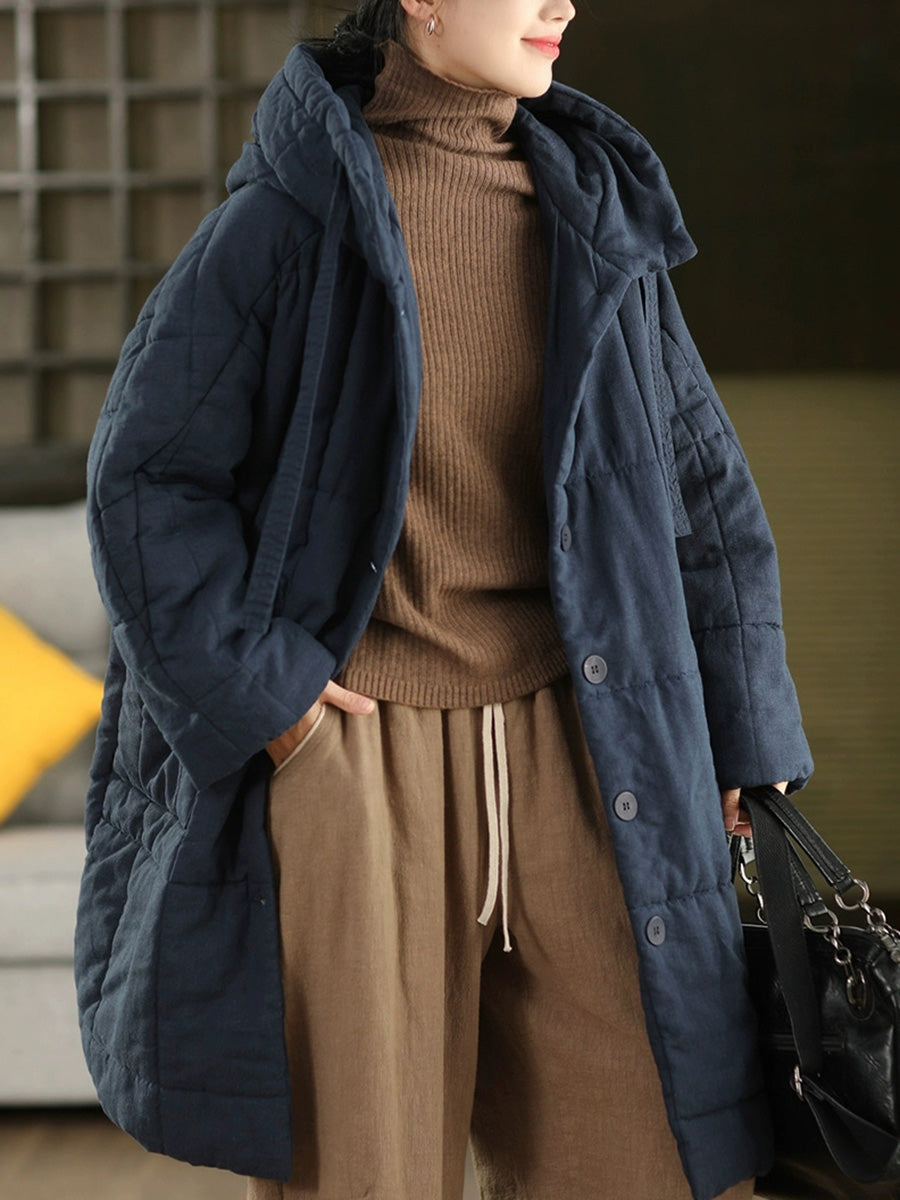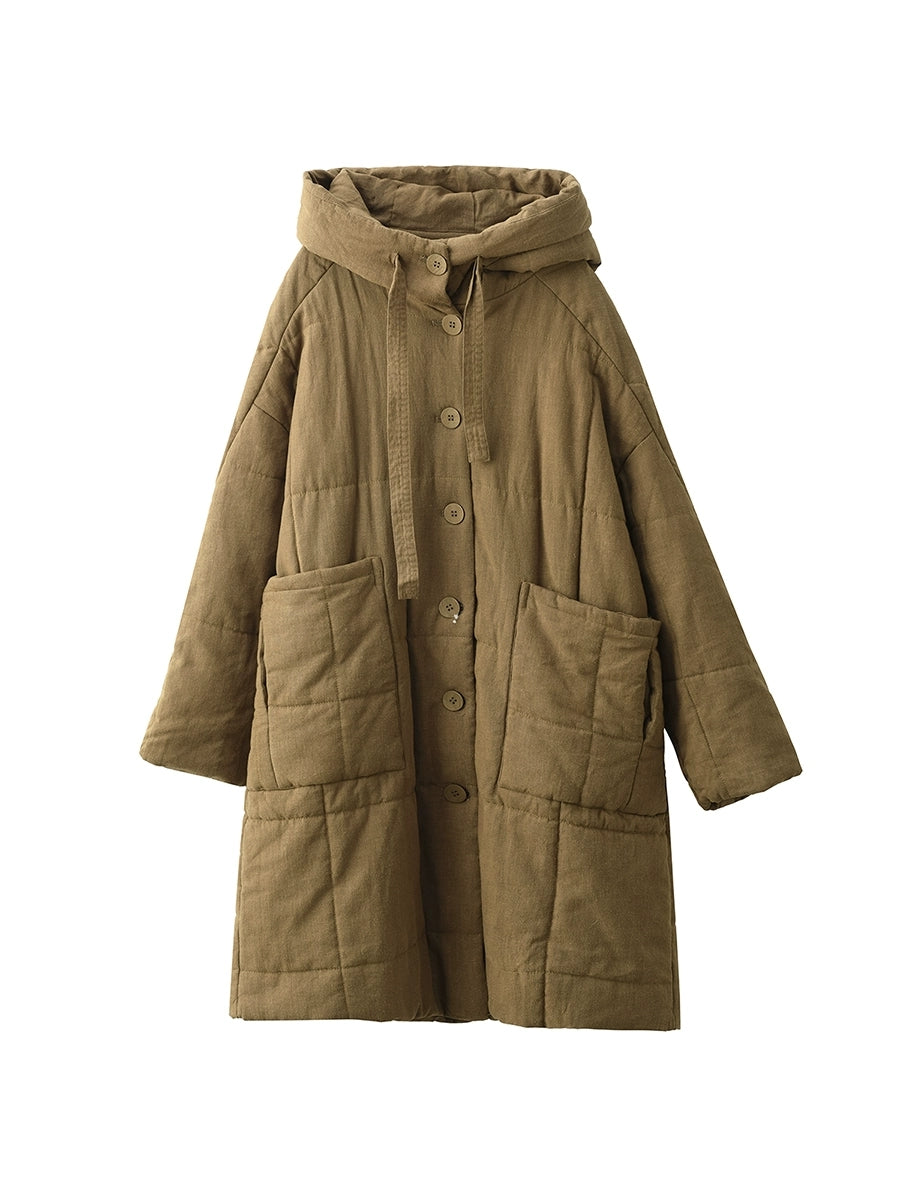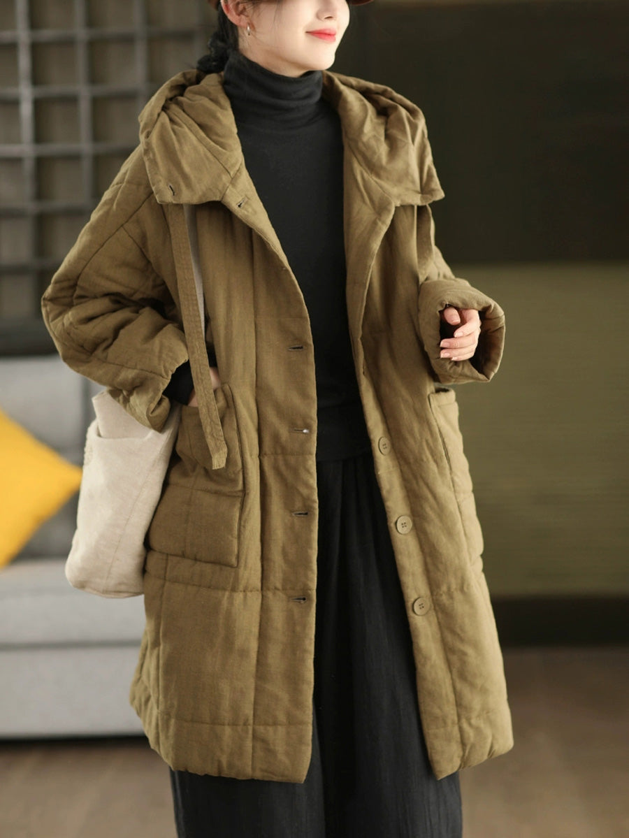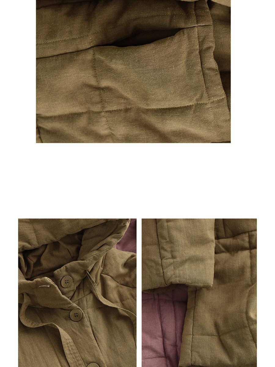 Damen Winter Retro Ramie Kapuzen-Wattierter Mantel, wattiert