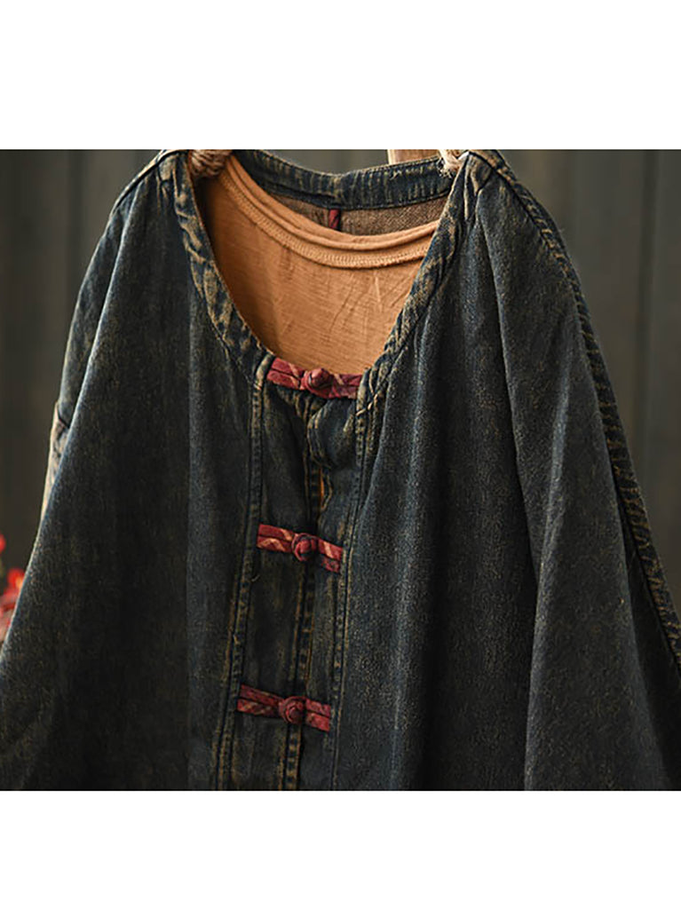 Damen Retro Herbst Patchwork Jeanshemd Mantel