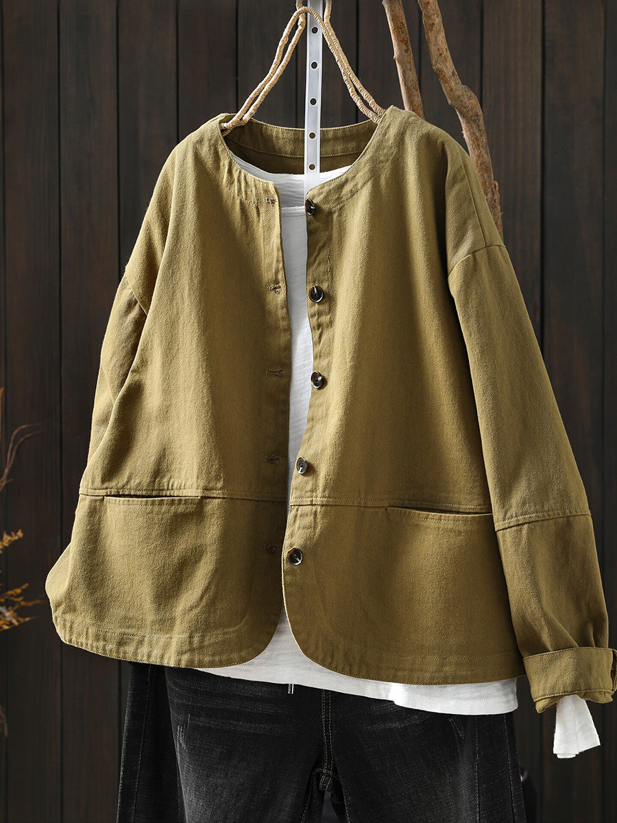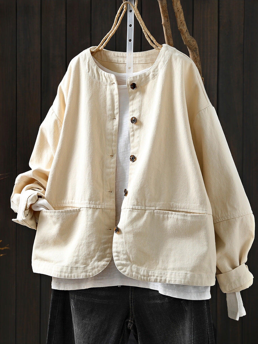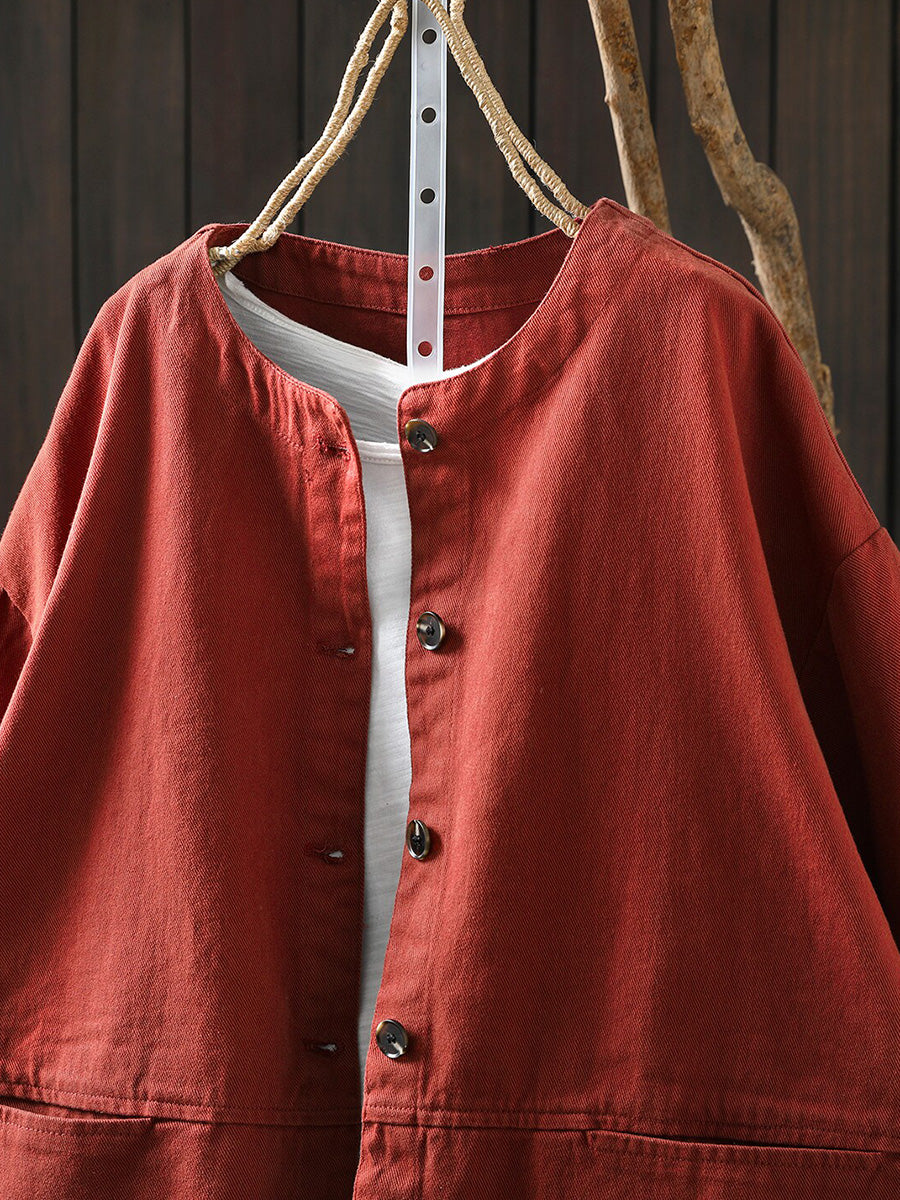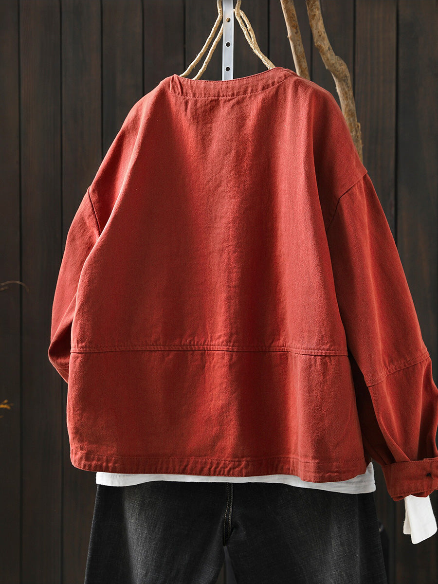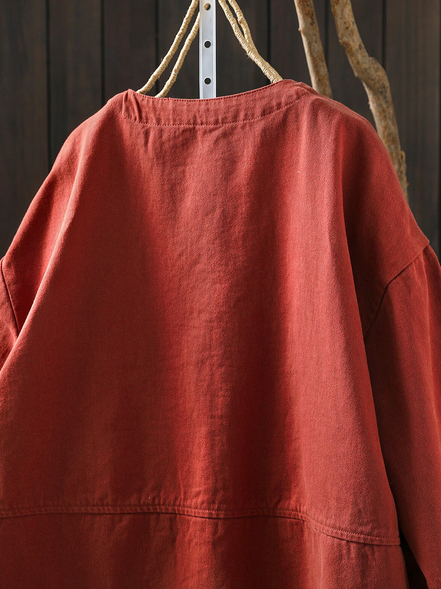 Damen Winterhemd, künstlerisch, einfarbig, Rundhalsausschnitt, 100 % Baumwolle