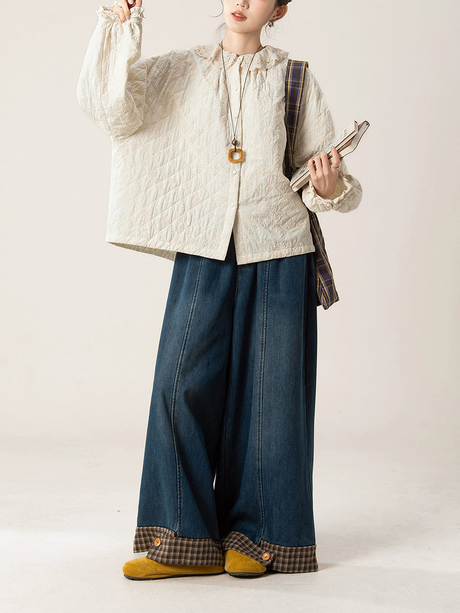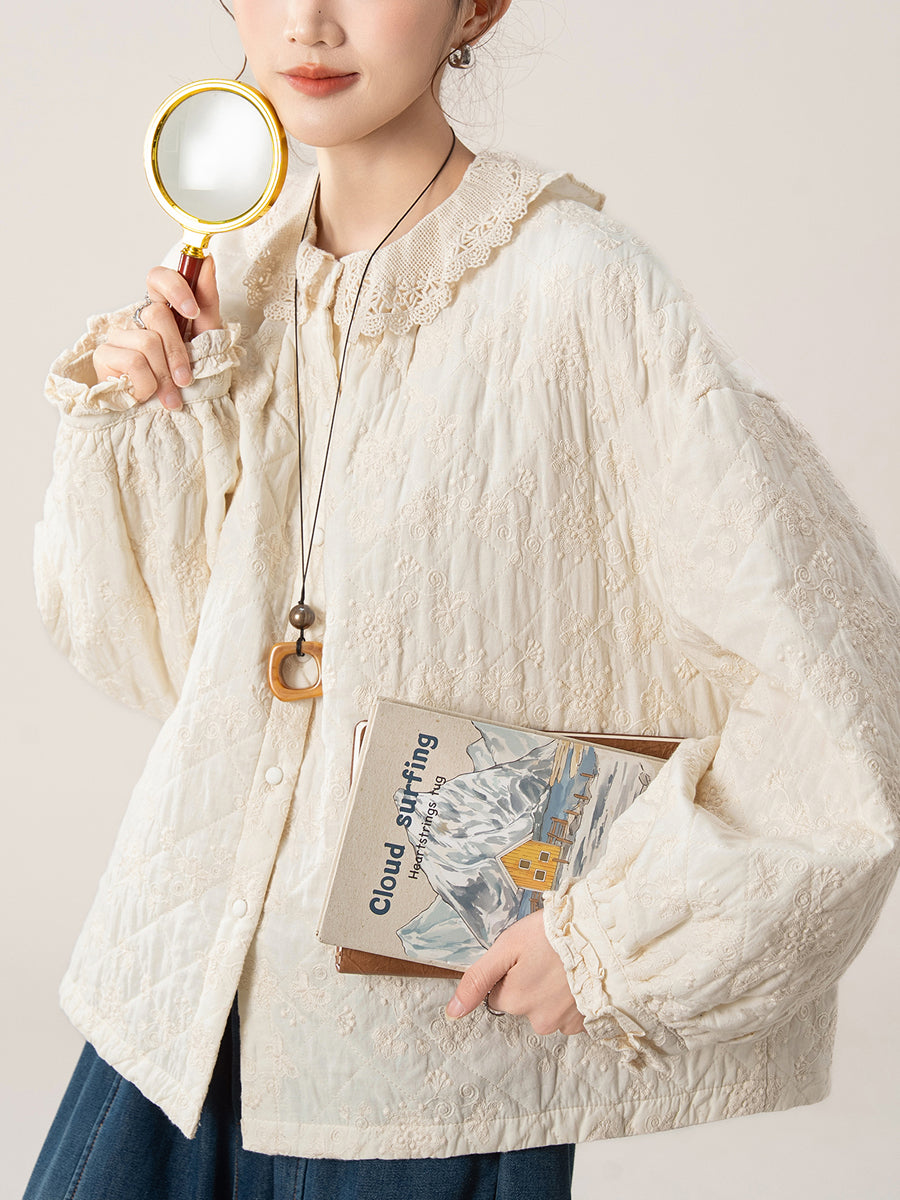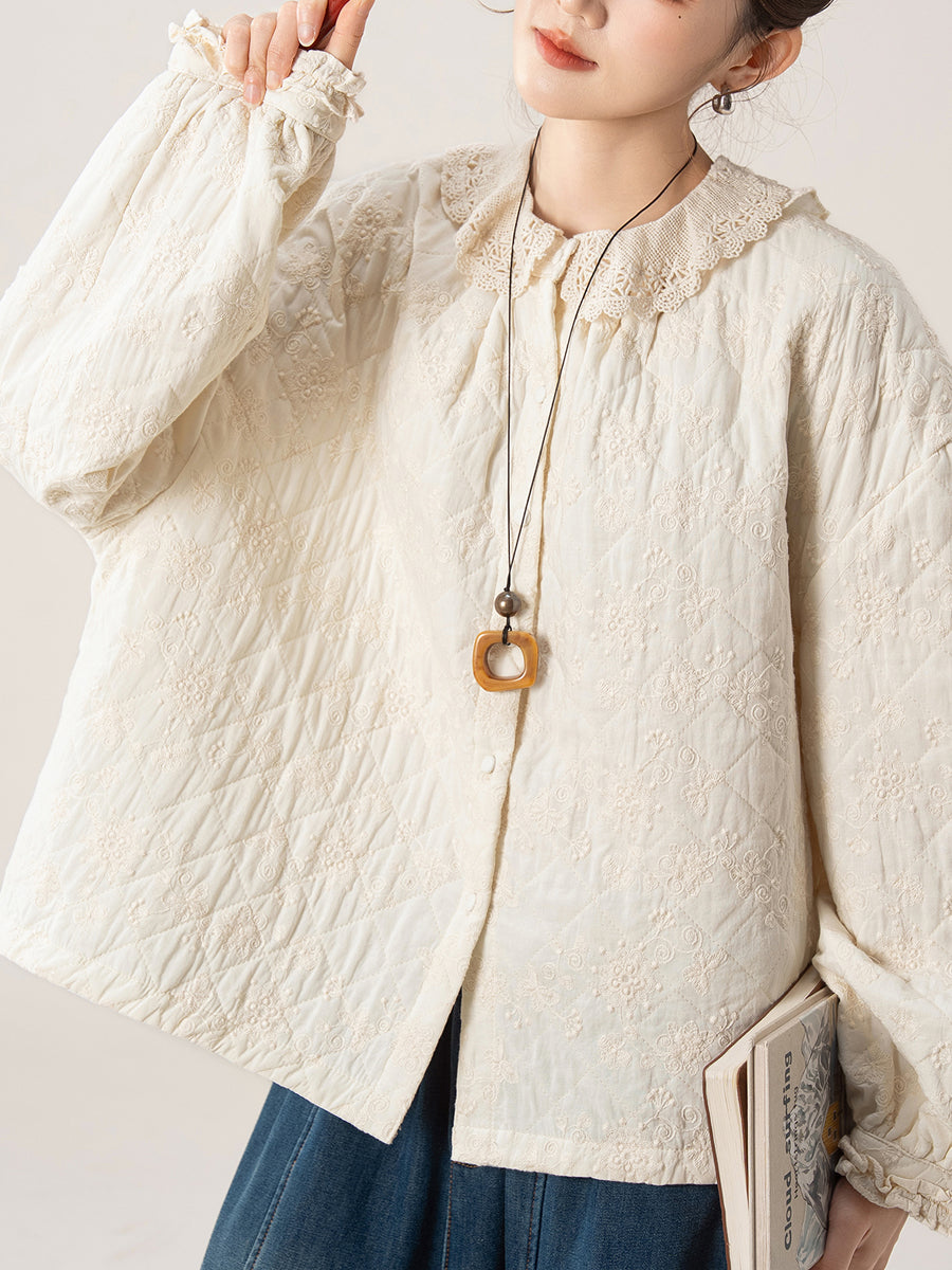 Damenbluse mit kunstvoller Herbststickerei und Spitzenkragen
