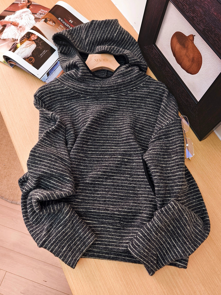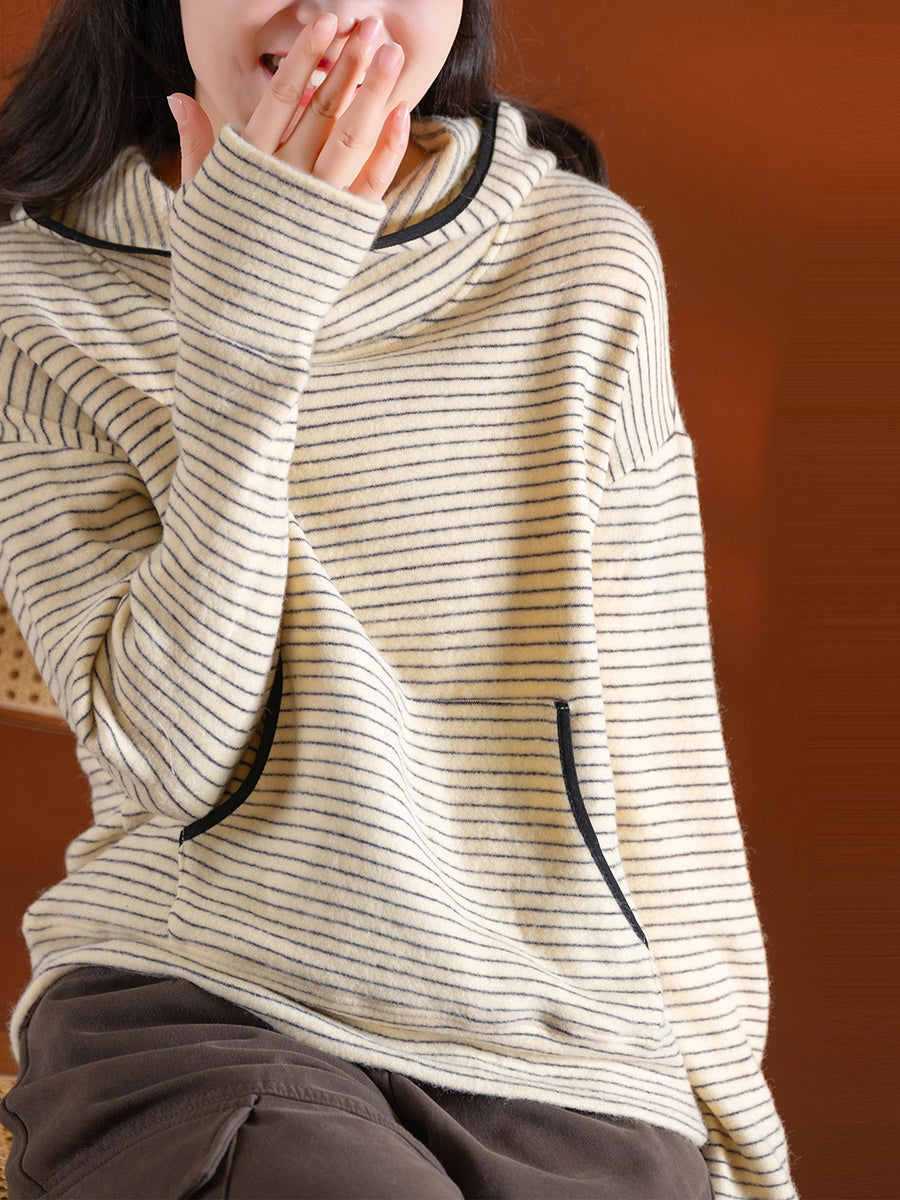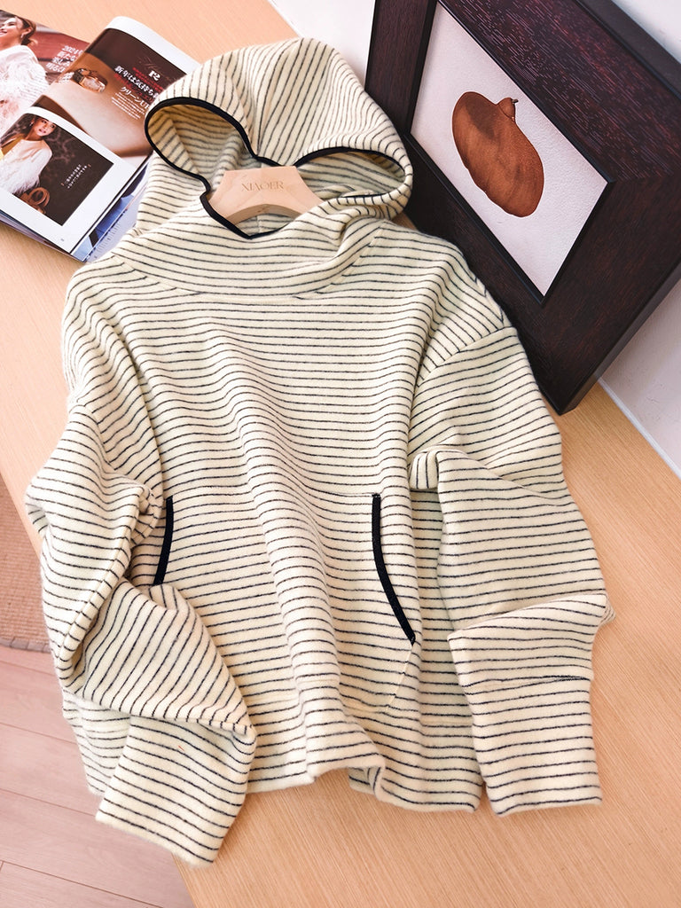 Lässiger, weicher Damen-Hoodie mit Streifenmuster und Tasche für den Herbst