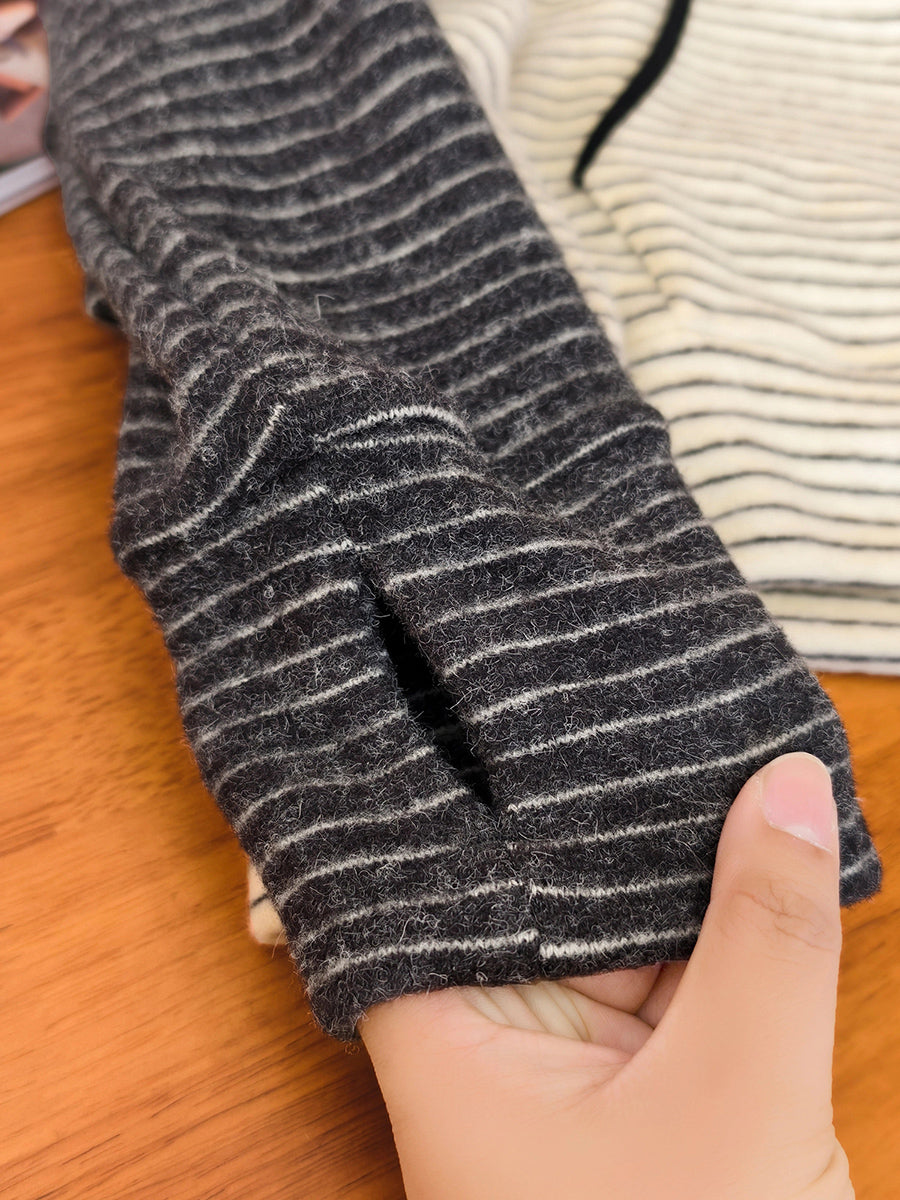 Diese Bluse im Vintage-Stil ist aus einem hochwertigen Materialmix aus 61 % Polyester, 25 % Viskose, 10 % Nylon und 4 % Elasthan gefertigt und vereint Komfort und Langlebigkeit. Das Streifenmuster und der klassische Rundhalsausschnitt sorgen für einen mühelos eleganten Look, während Raglanärmel optimale Bewegungsfreiheit und eine lockere Silhouette gewährleisten. Das weiche Fleecefutter hält angenehm warm und macht die Bluse zum idealen Begleiter für den Übergang von Herbst zu Winter. Dank ihres lässigen Designs ist sie vielseitig genug für den Alltag oder Wochenendausflüge.