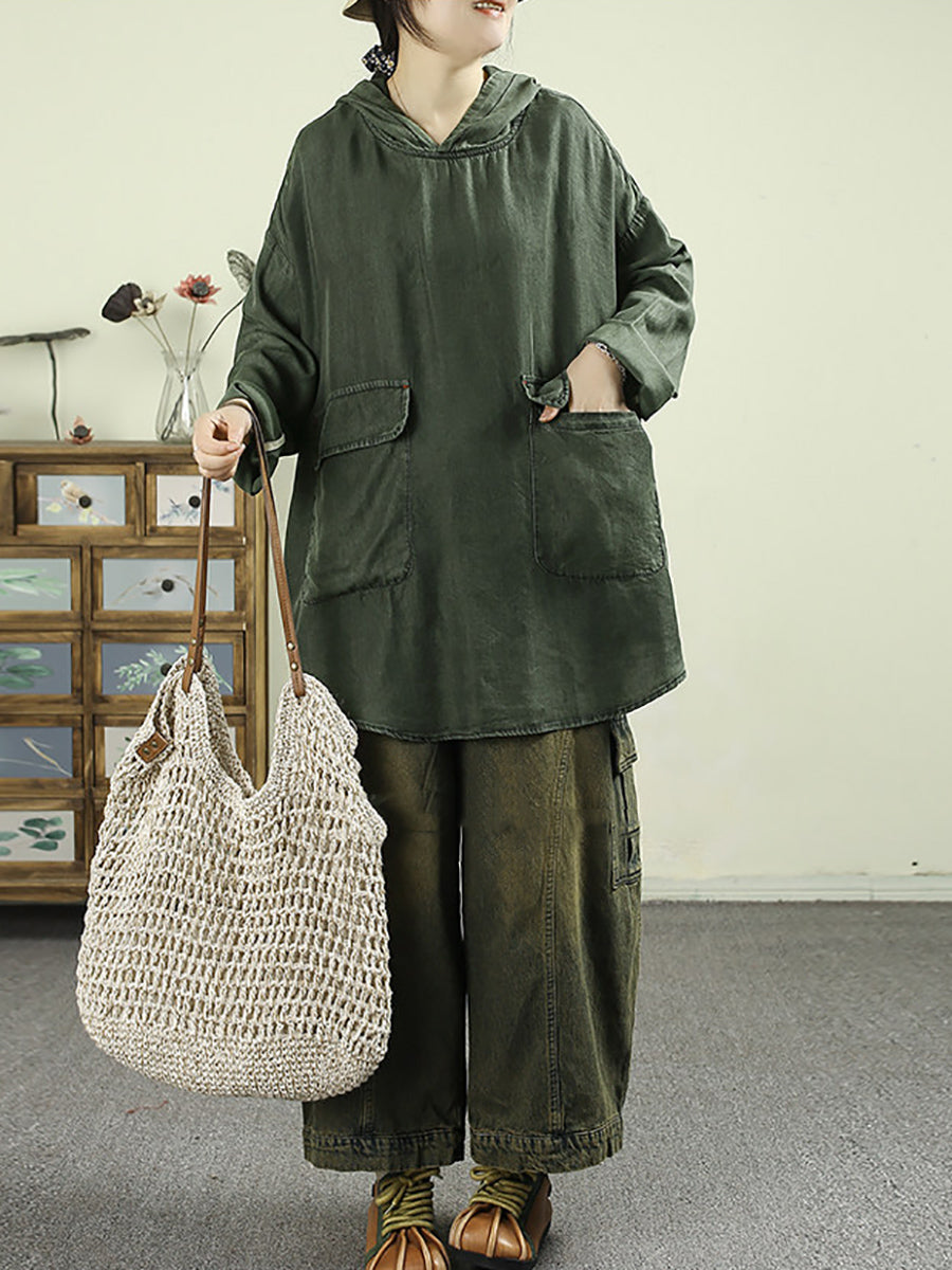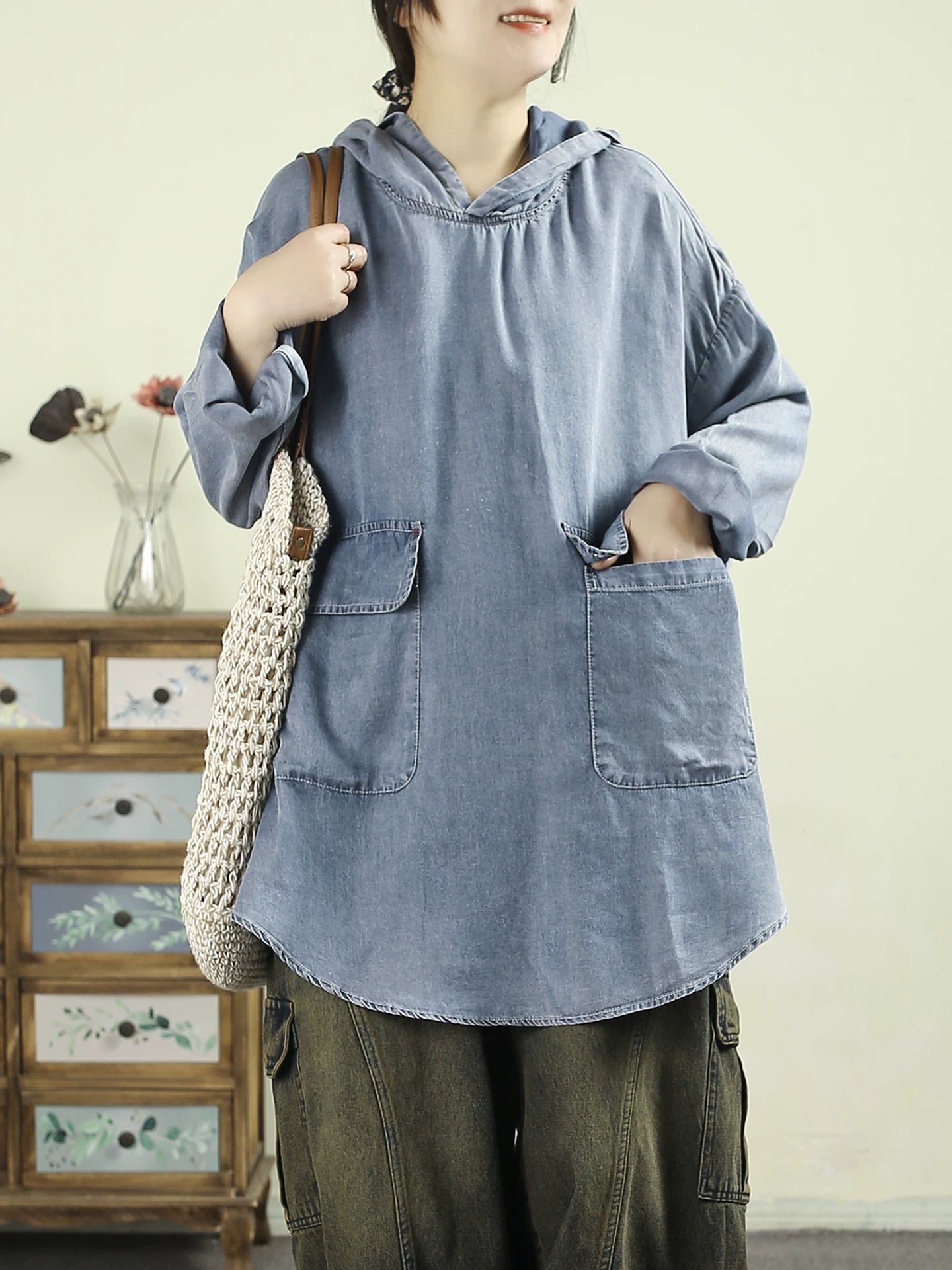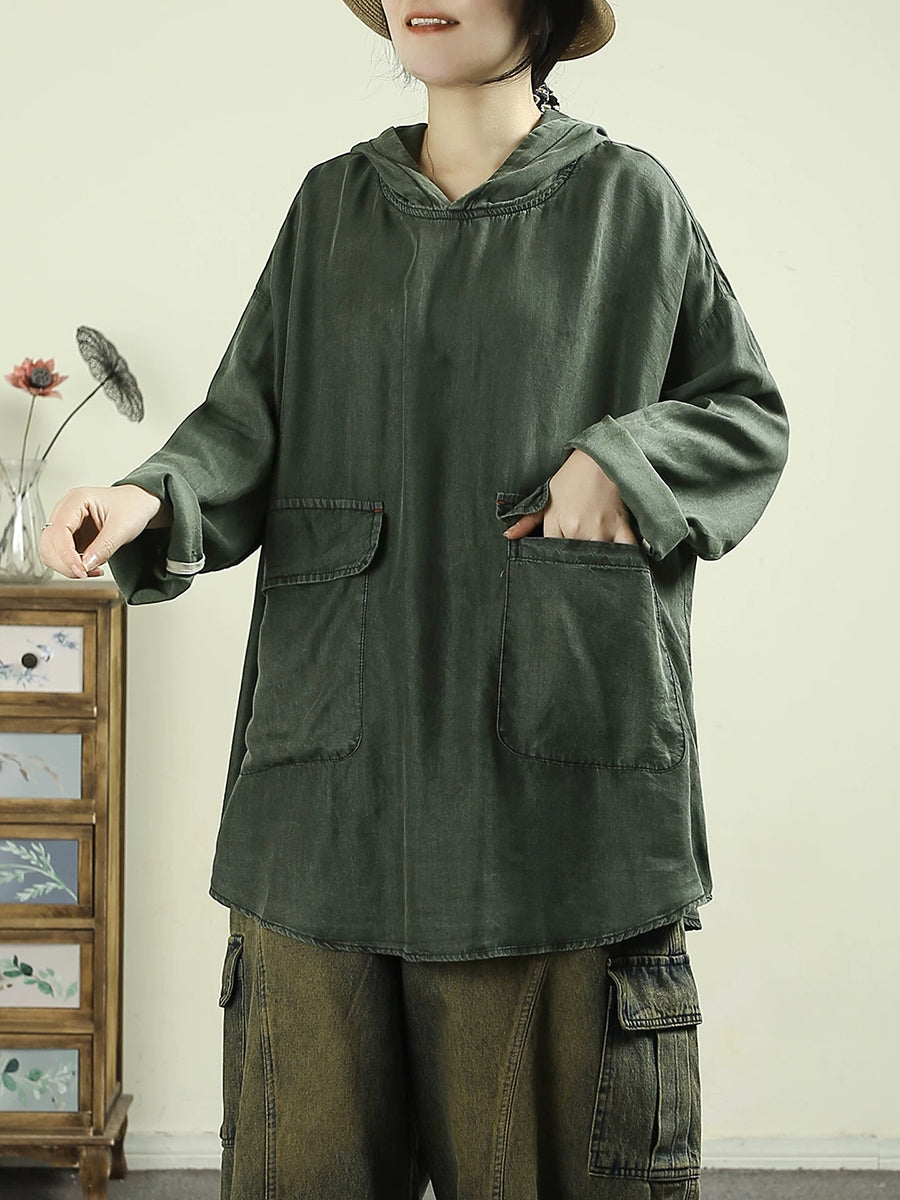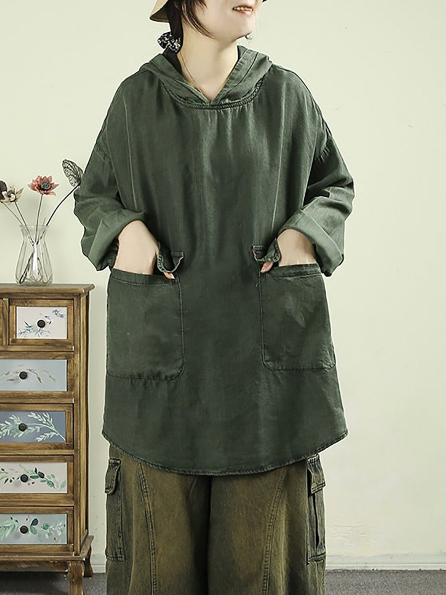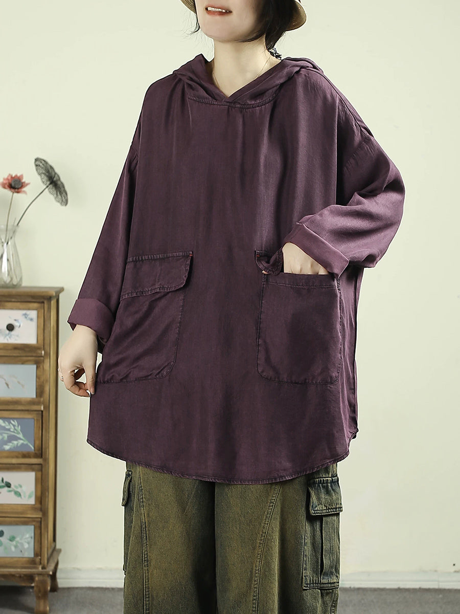 Damen-Frühlings-Hoodie in Unifarben aus 90 % Baumwolle