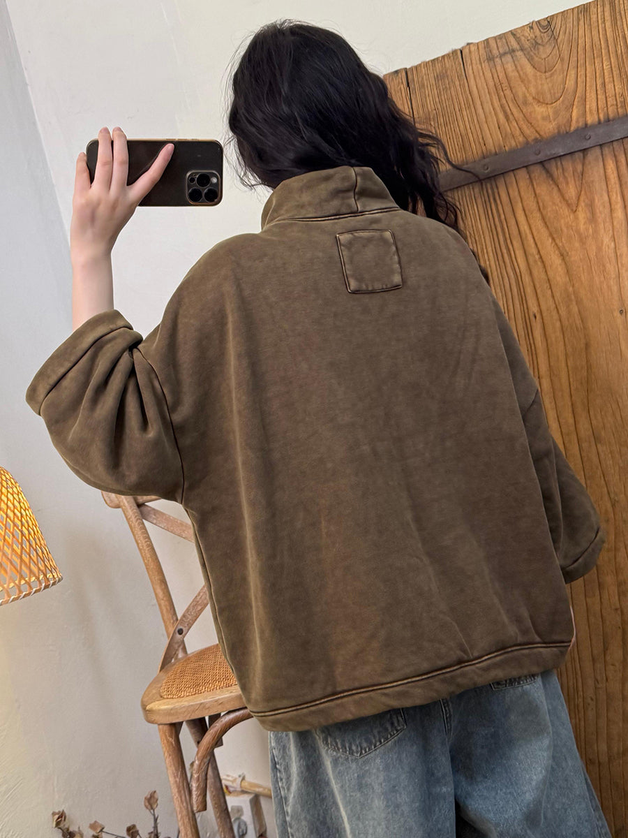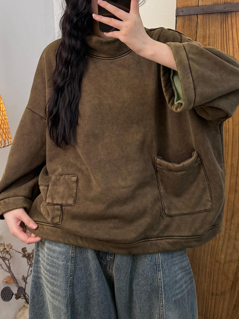 Vintage-Herbstbluse für Damen mit Stehkragen und Fleecefutter
