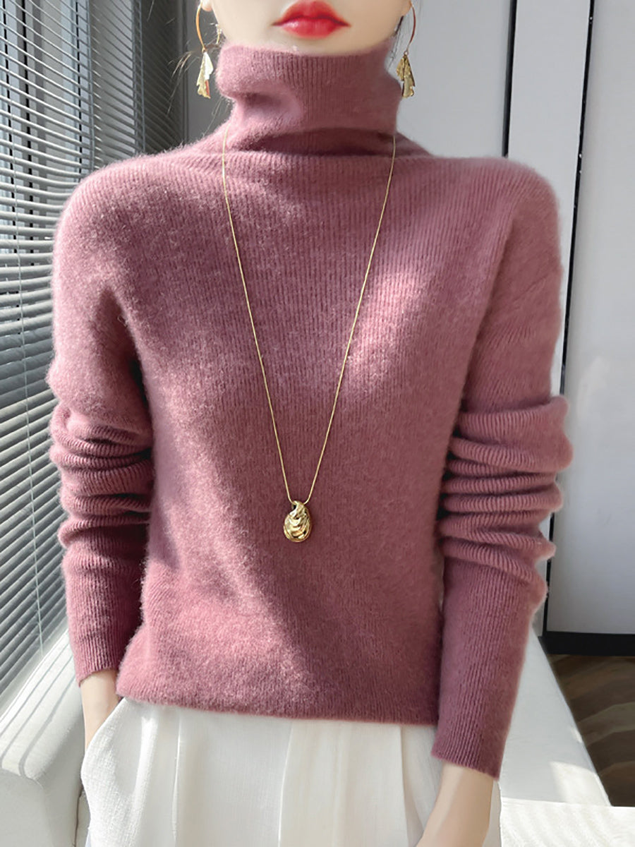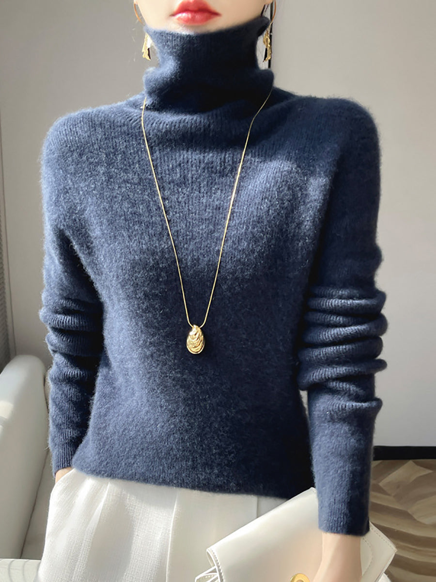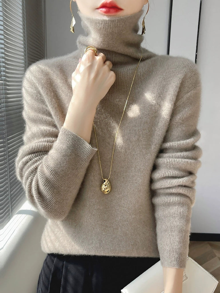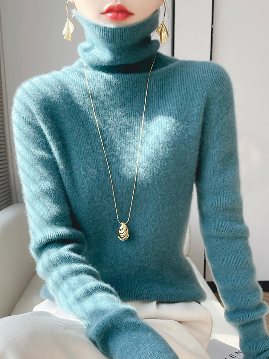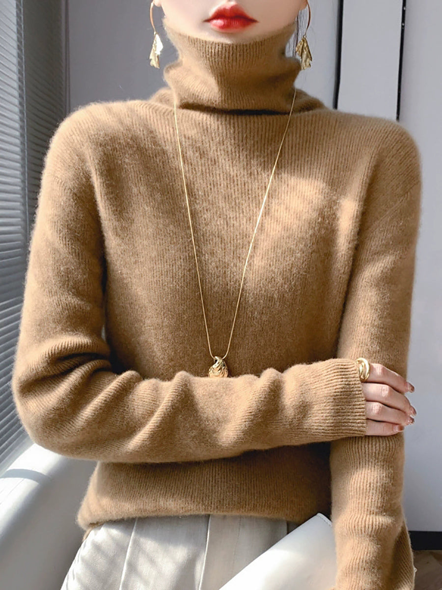Damen Winter Casual Einfarbige Rollkragenbluse