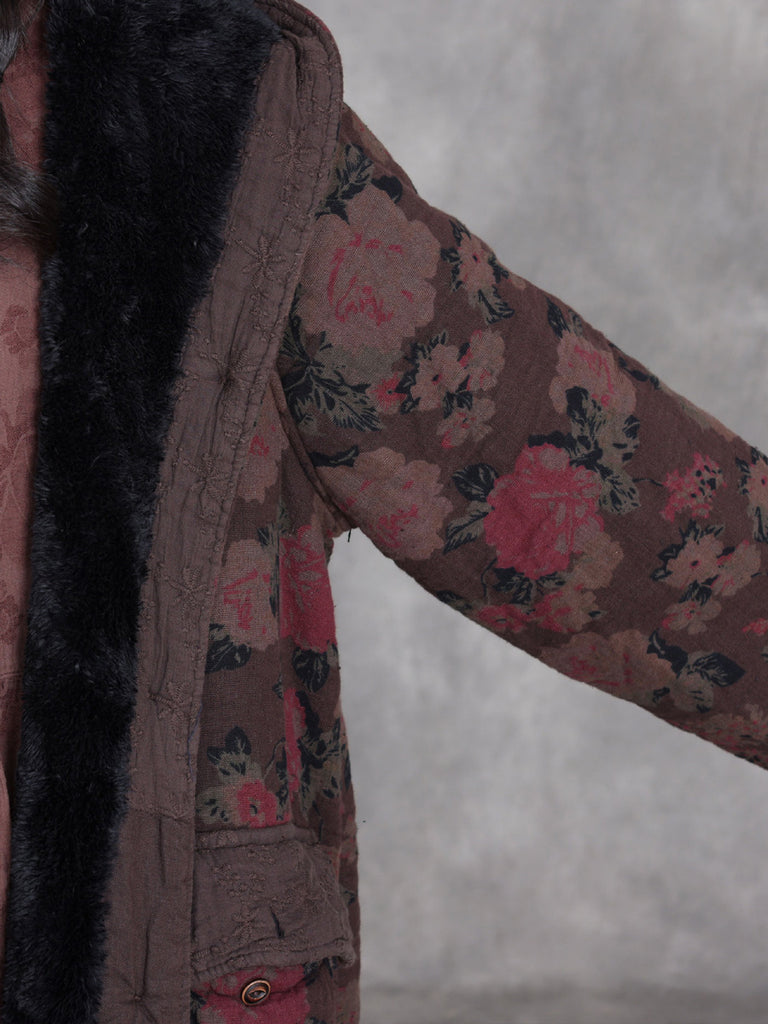 Damen Winter Retro Blumen Baumwolle Kapuzenmantel