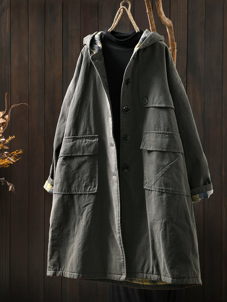 Damen Herbst Vintage Pure Color Baumwolle Kapuzenmantel