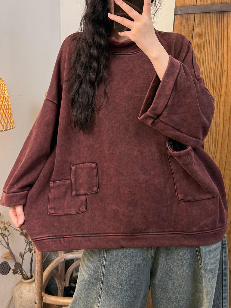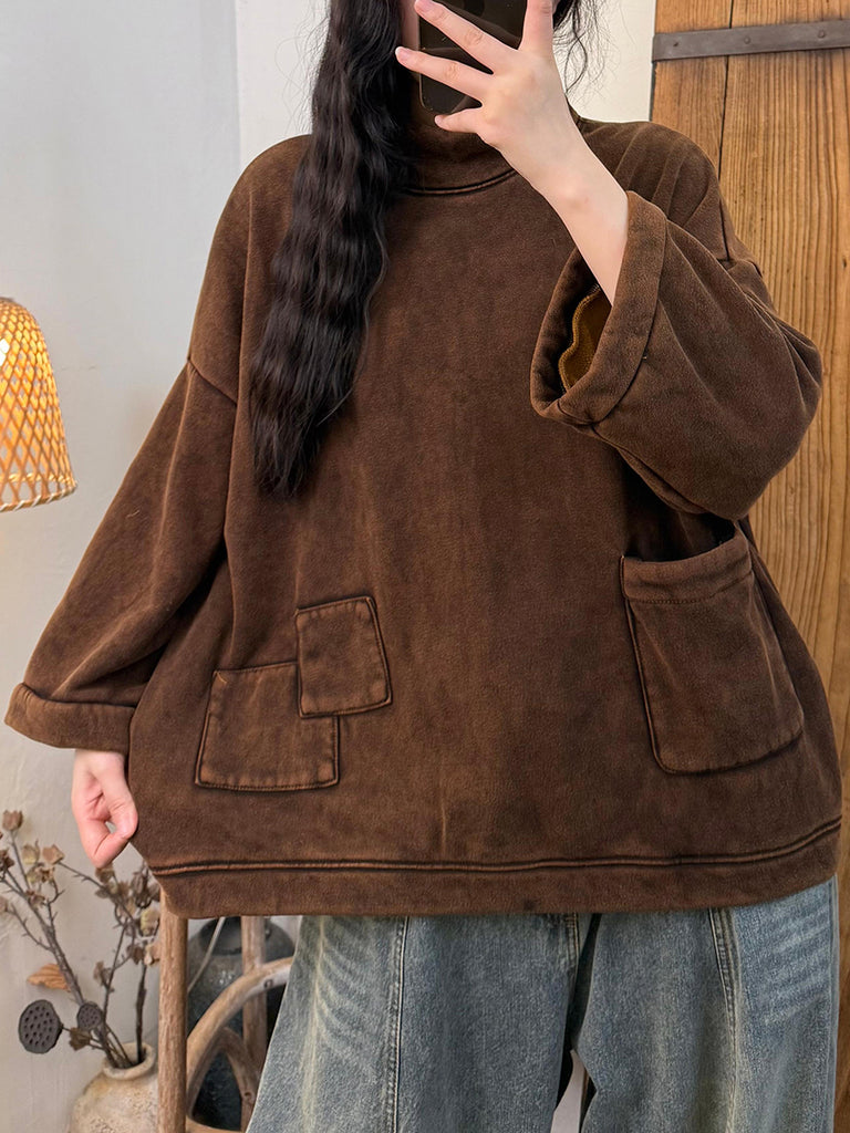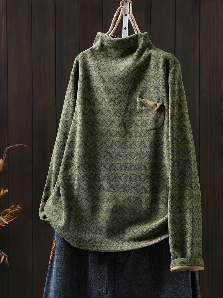 Vintage-Herbstbluse für Damen mit Stehkragen und Fleecefutter