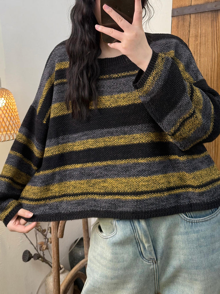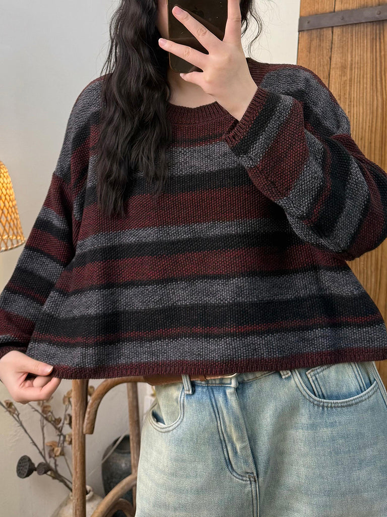 Damen Herbst Lässige Streifen O-Ausschnitt Bluse