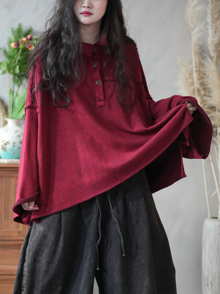 Vintage-Herbstbluse für Damen, einfarbig, mit Umlegekragen