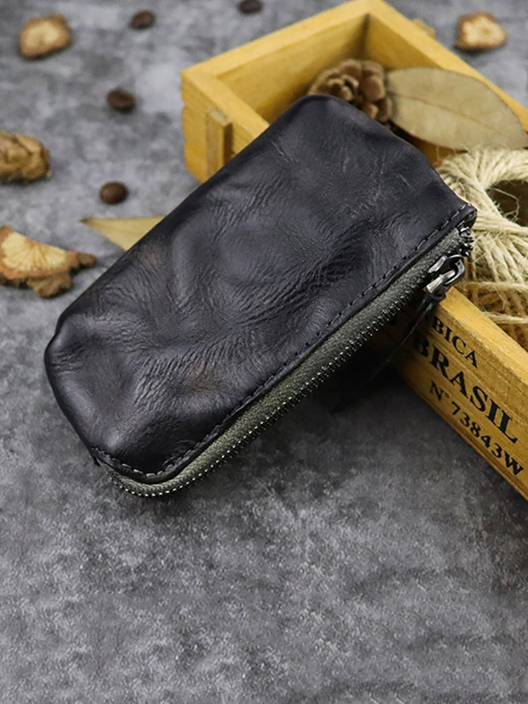 Vintage-Geldbörse aus echtem Leder mit Reißverschluss
