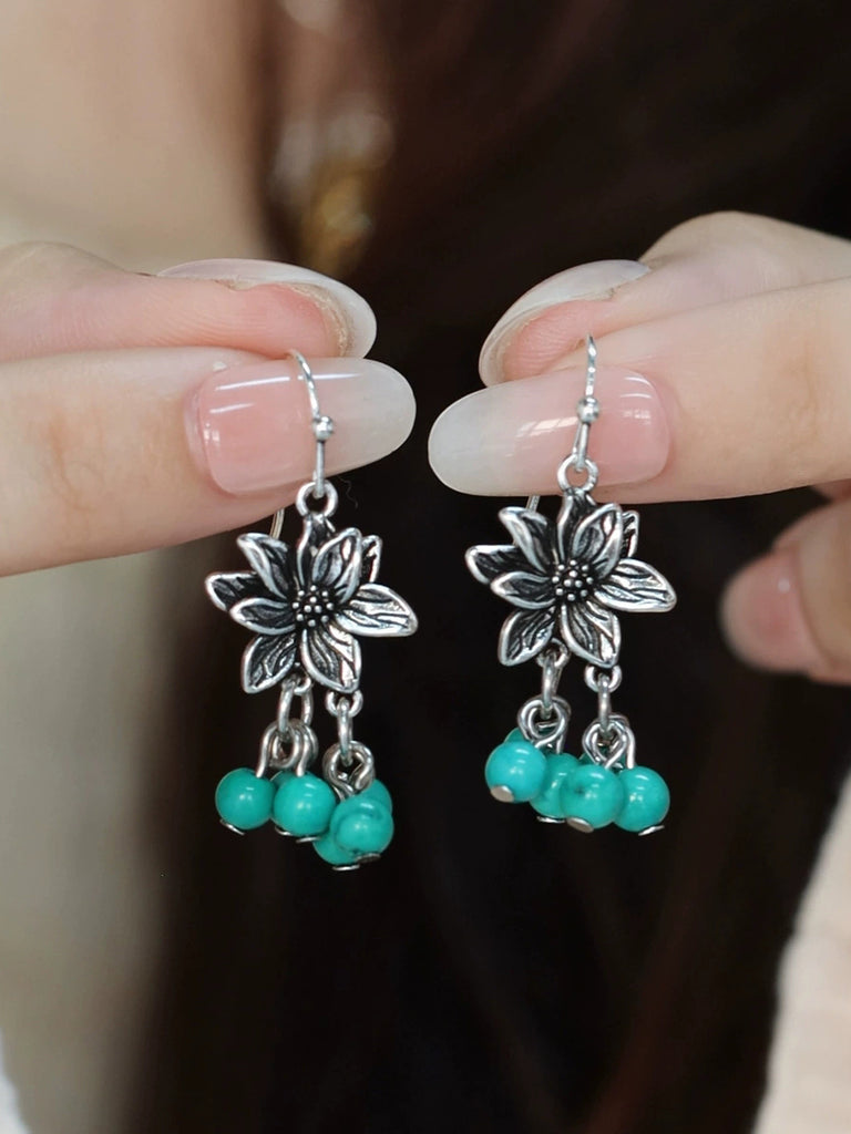 Frauen Ethnische Legierung Lotus Türkis Perlen Quaste Ohrringe
