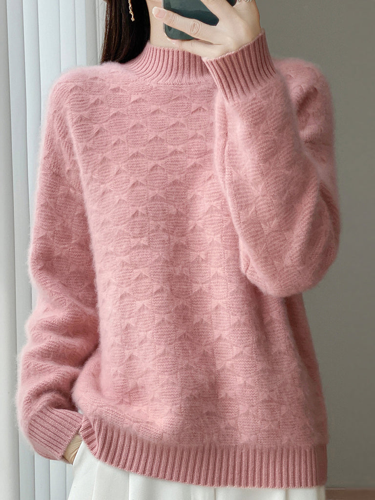 Damen Winterpullover mit Schleife, einfarbig, gestrickt, halbrunder Rollkragen