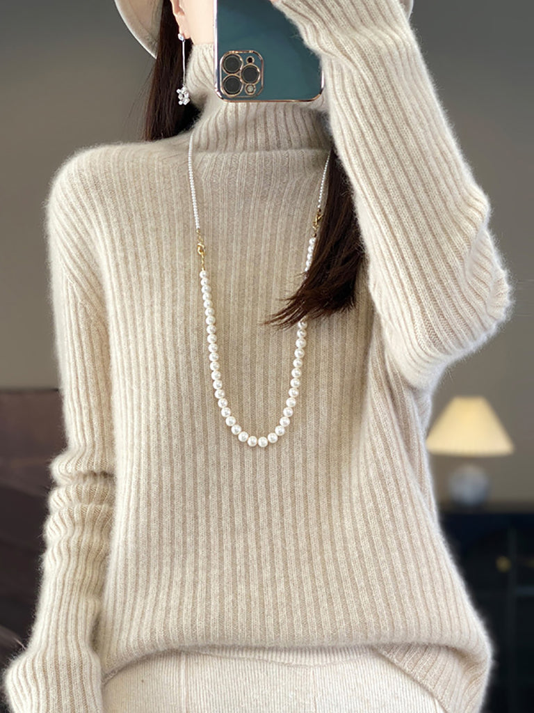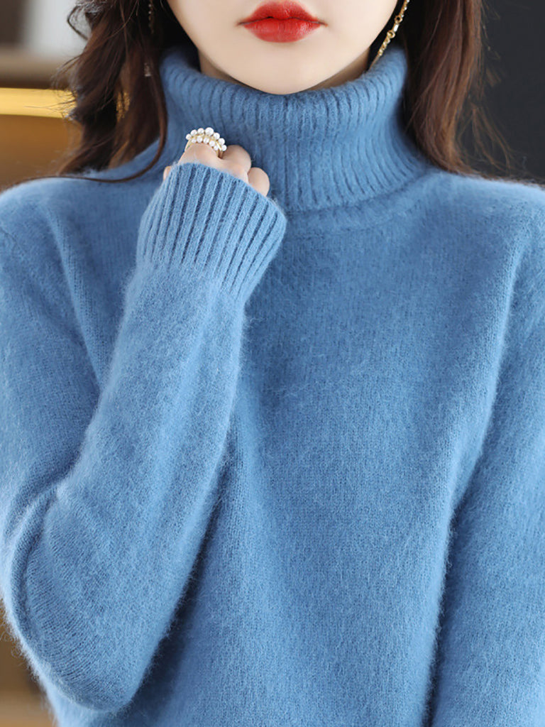 Damen Winterpullover aus einfarbiger Wolle mit Rollkragen