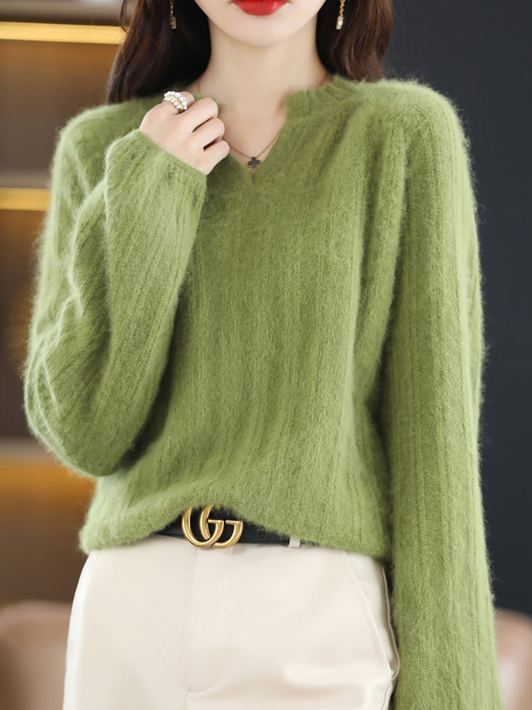Damen Winterpullover mit V-Ausschnitt, einfarbig