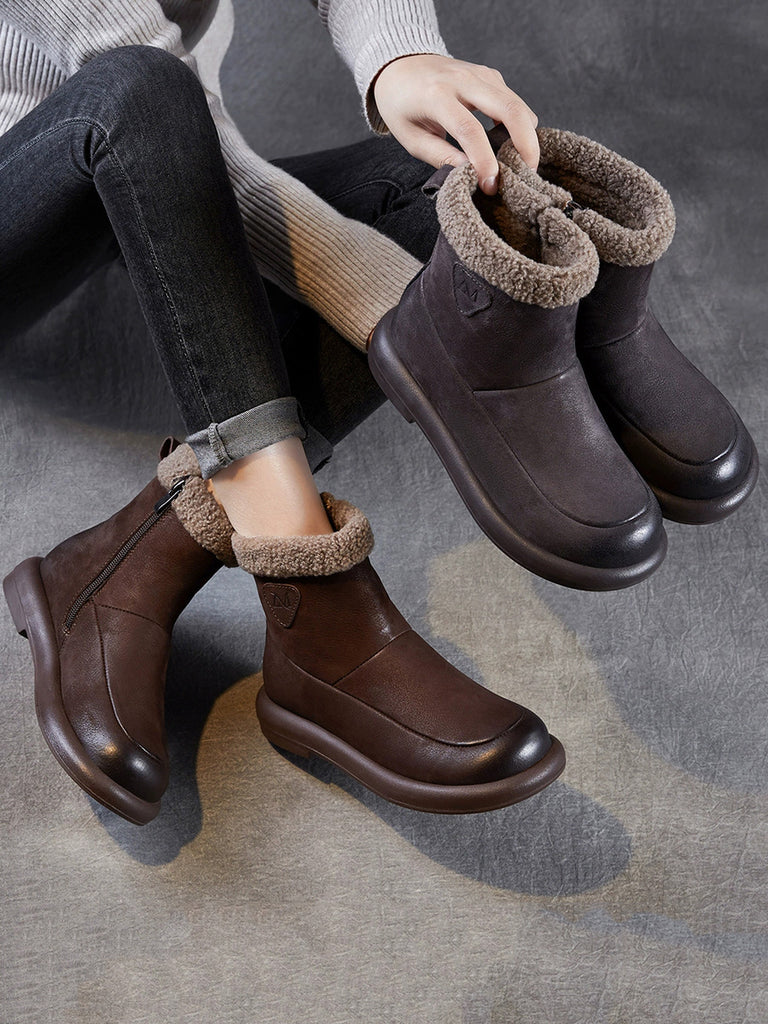 Damen Winter Schneestiefel aus echtem Leder mit Fleecefutter