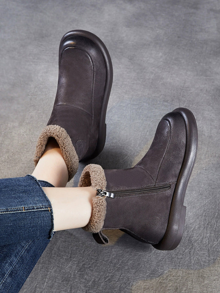 Damen Winter Stiefeletten aus echtem Leder mit niedrigem Absatz
