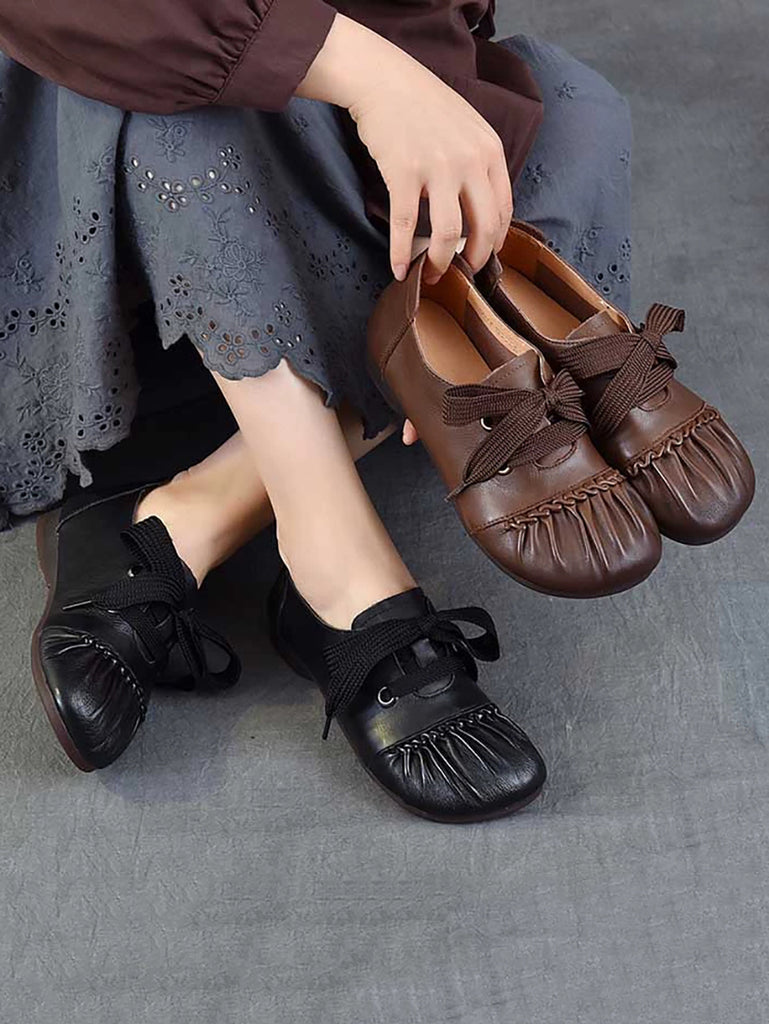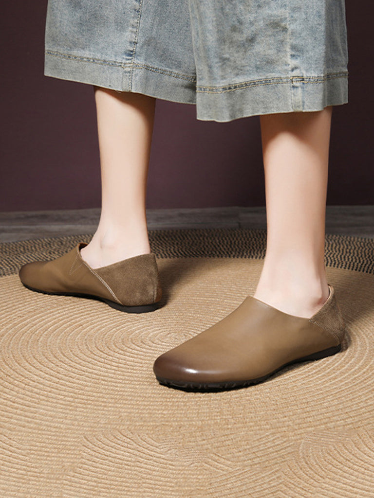 Damen Casual Pure Color Echtleder Flache Schuhe
