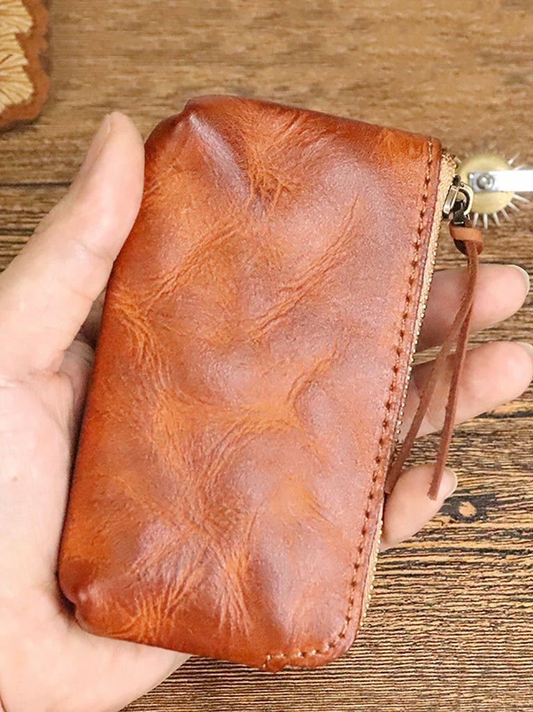 Damen Vintage Echtleder Geldbörse mit Reißverschluss