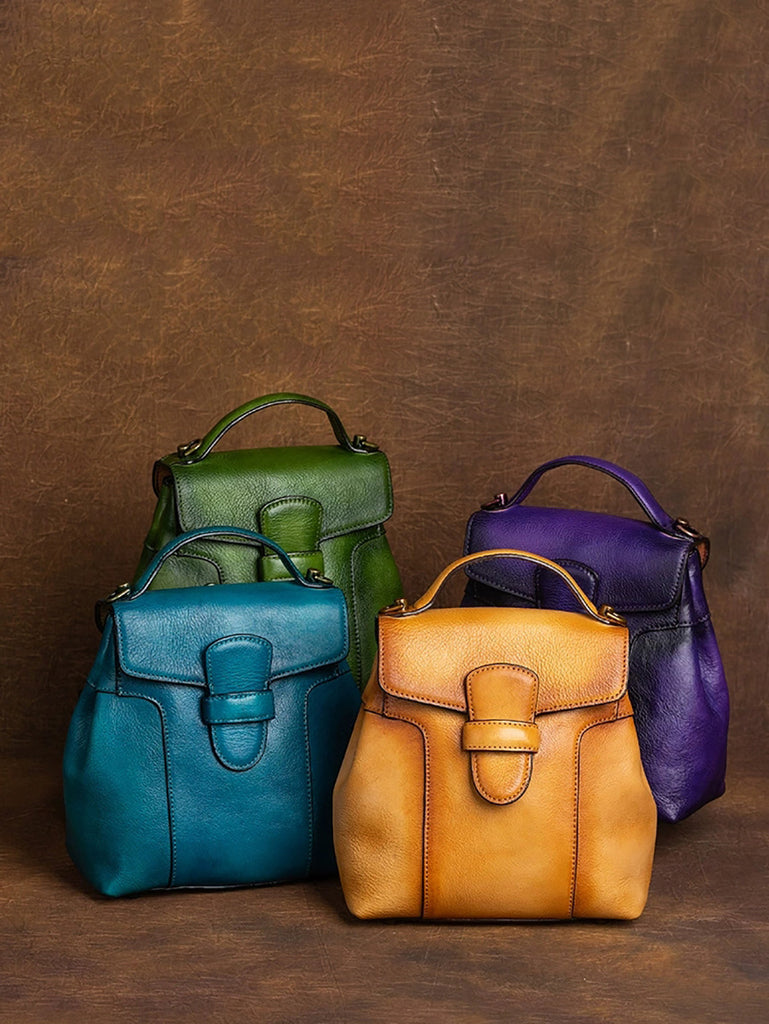 Damen-Rucksack aus echtem Leder im Vintage-Stil mit großem Fassungsvermögen