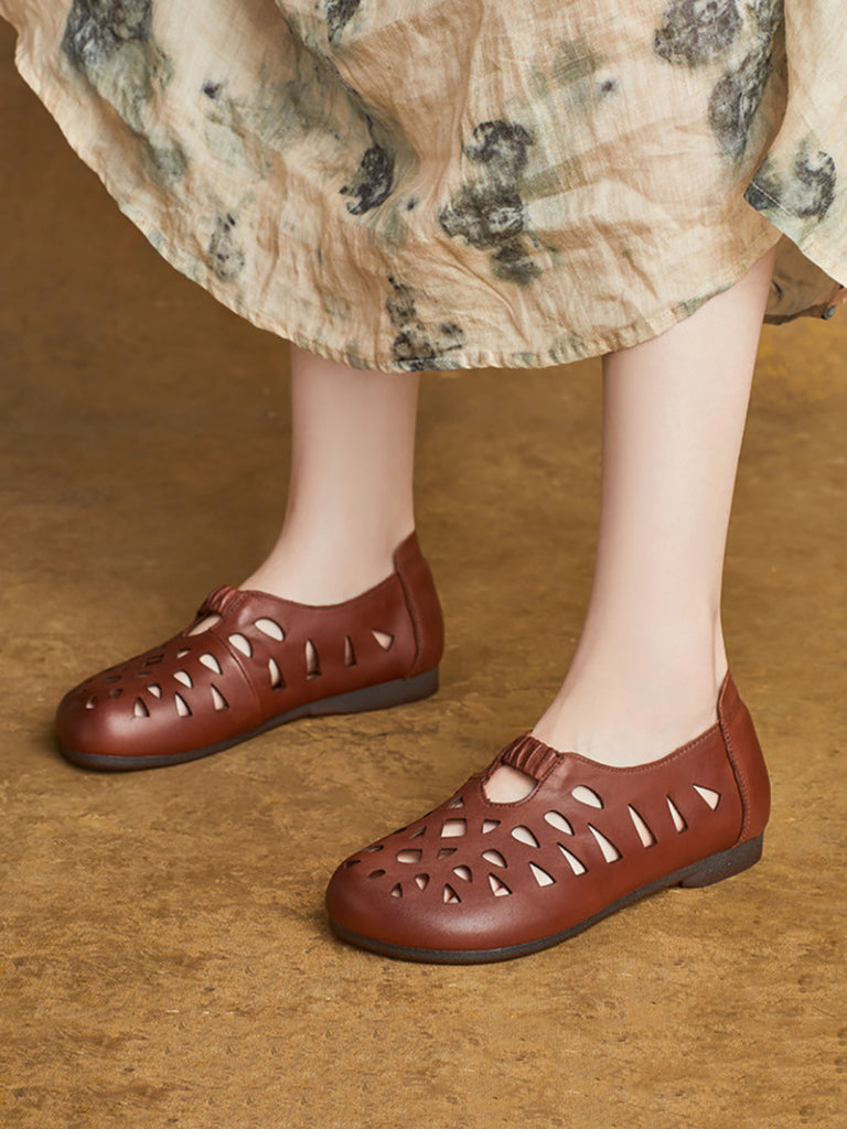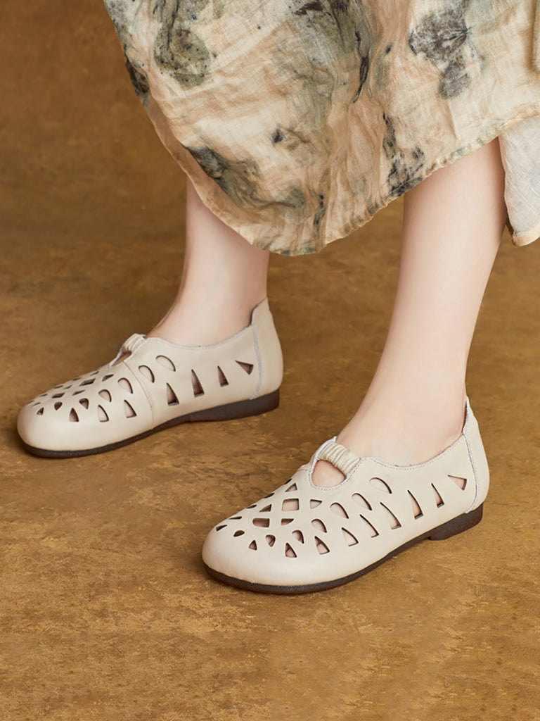Damen Sommer Casual Aushöhlen Leder Flache Schuhe