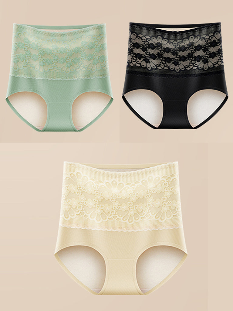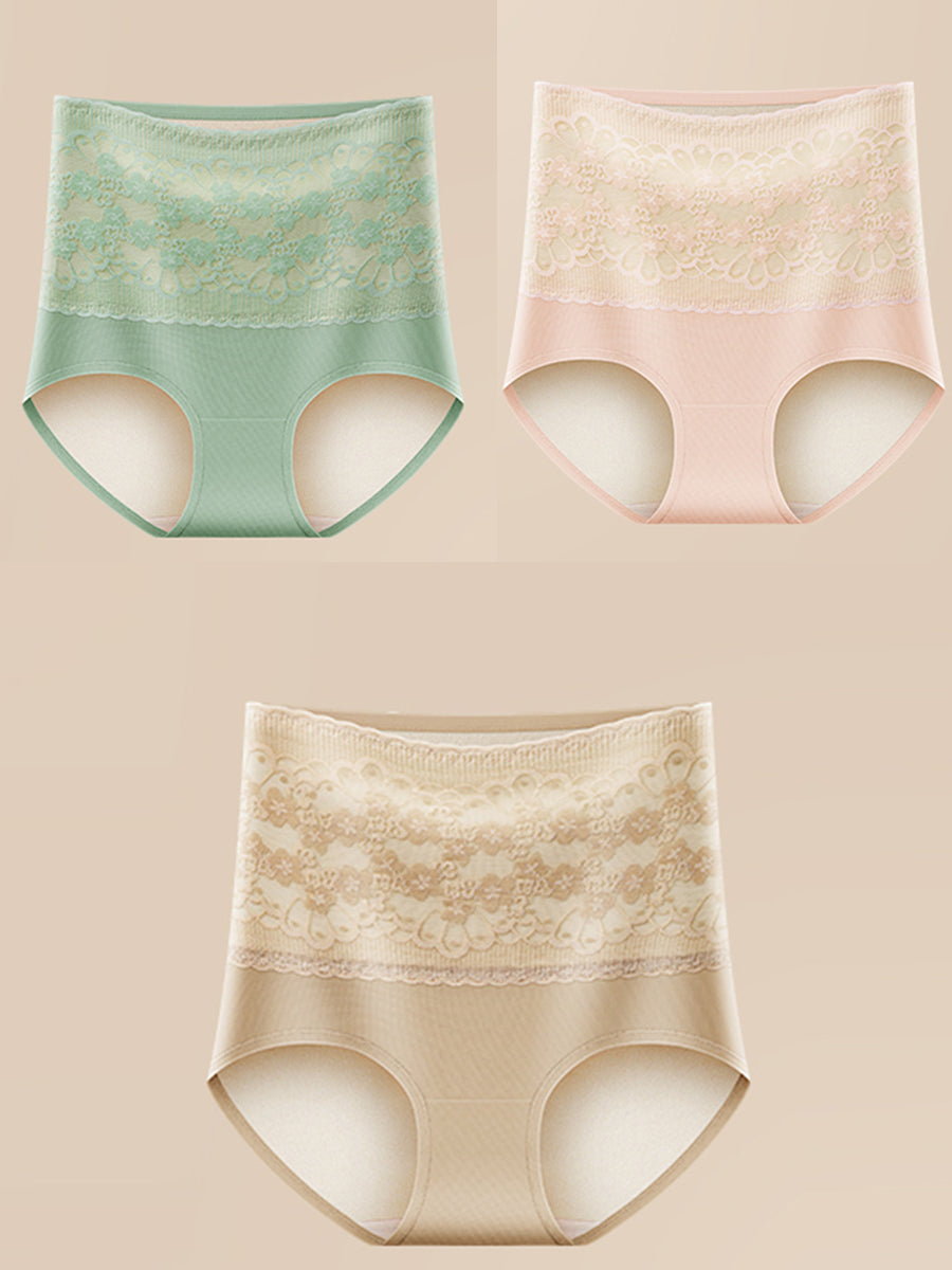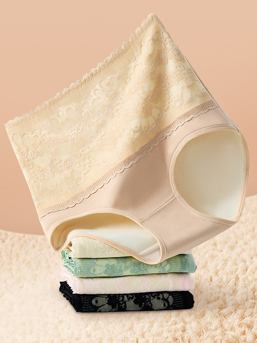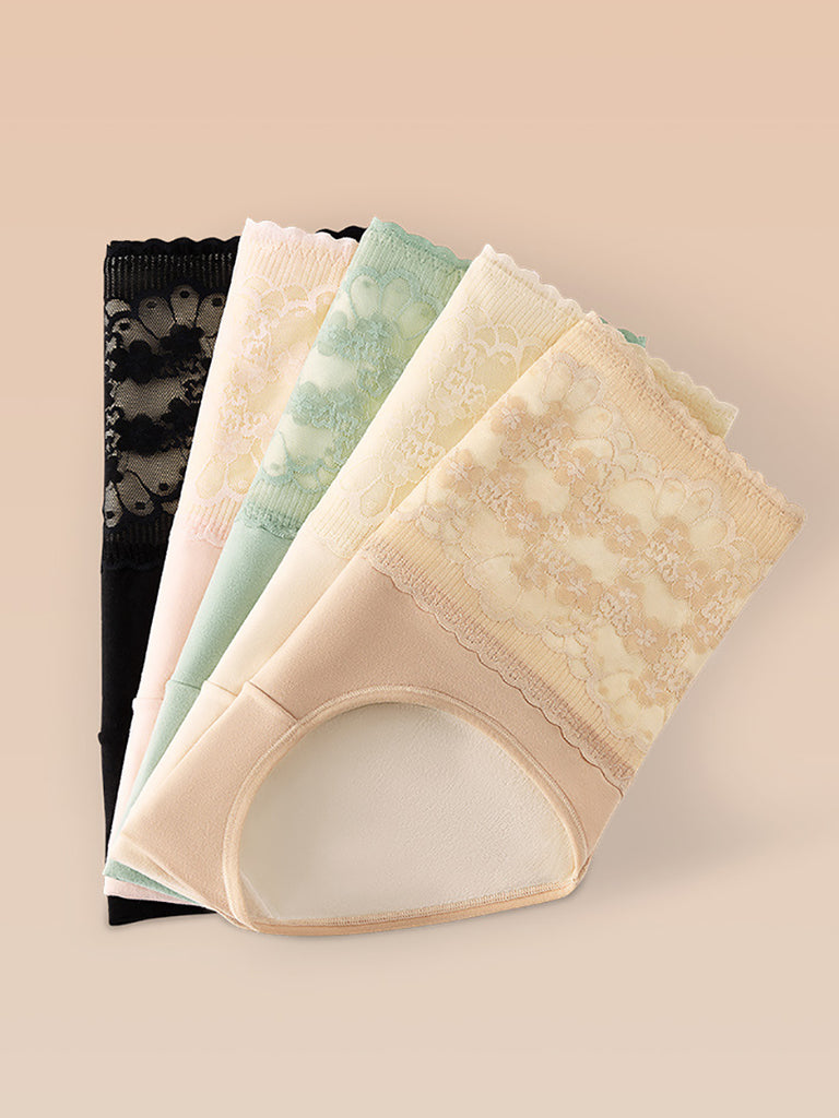 5-teiliges Set Damen-Unterwäsche aus Baumwolle in Unifarben mit hohem Bund