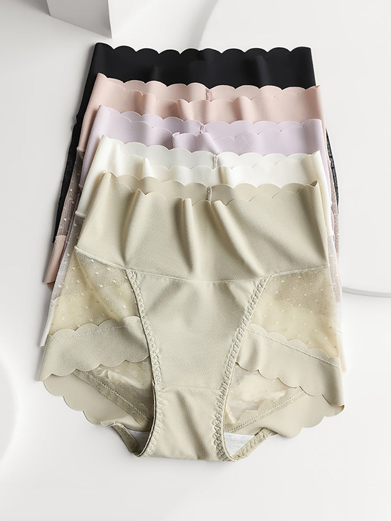 5 Stück Sommer Damen Reine Farbe Hohe Taille Unterwäsche