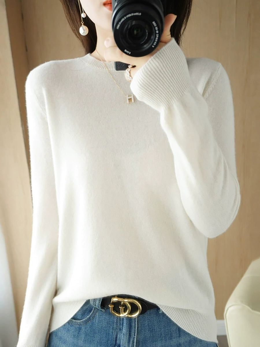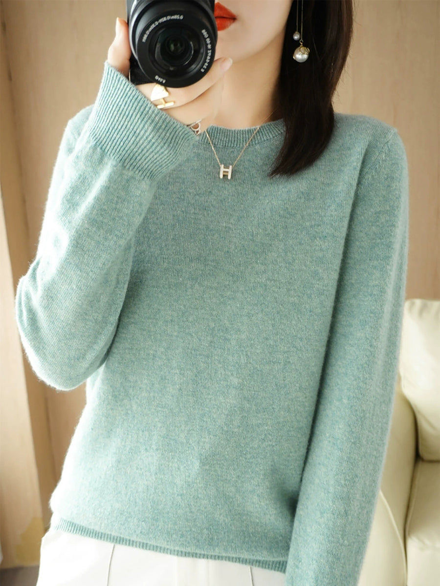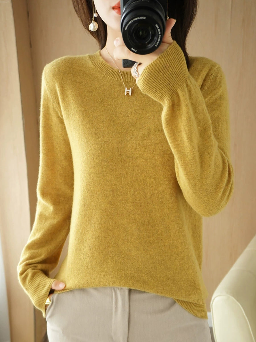 Damen-Freizeitpullover mit Rundhalsausschnitt, einfarbig, für den Frühling