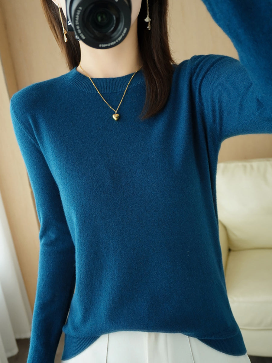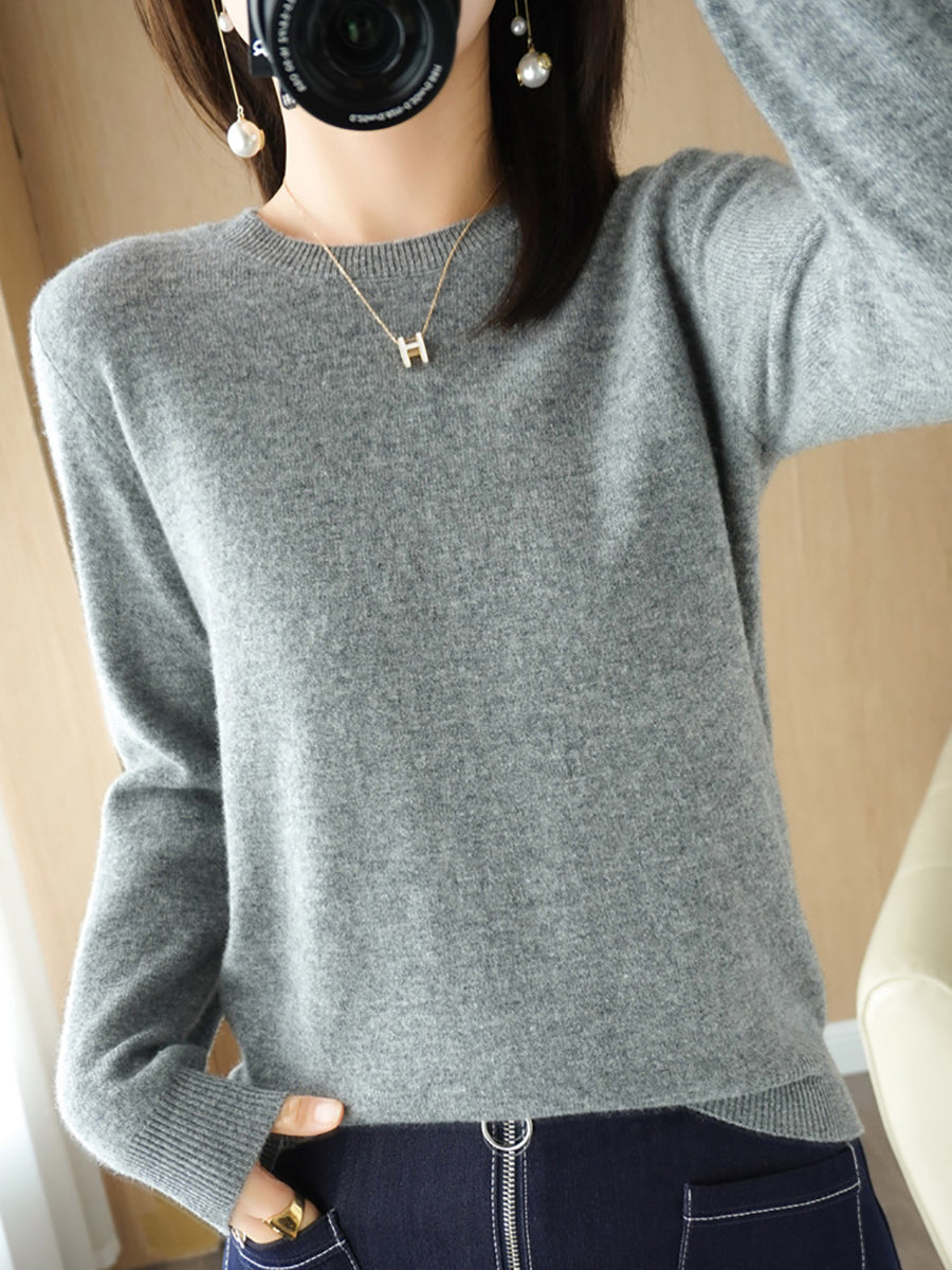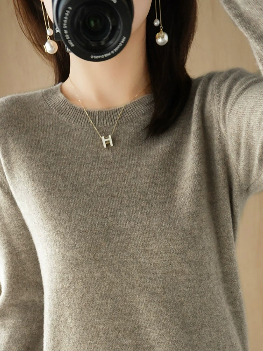 Damen-Freizeitpullover mit Rundhalsausschnitt, einfarbig, für den Frühling