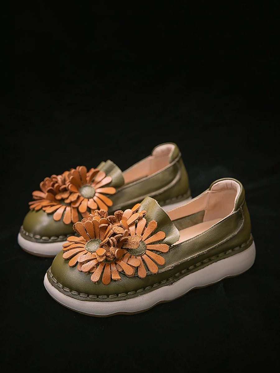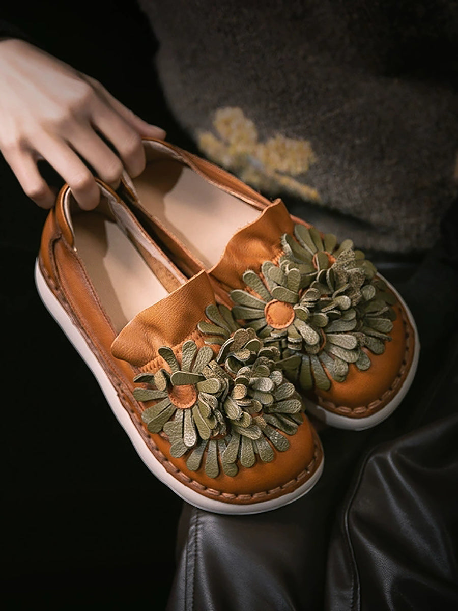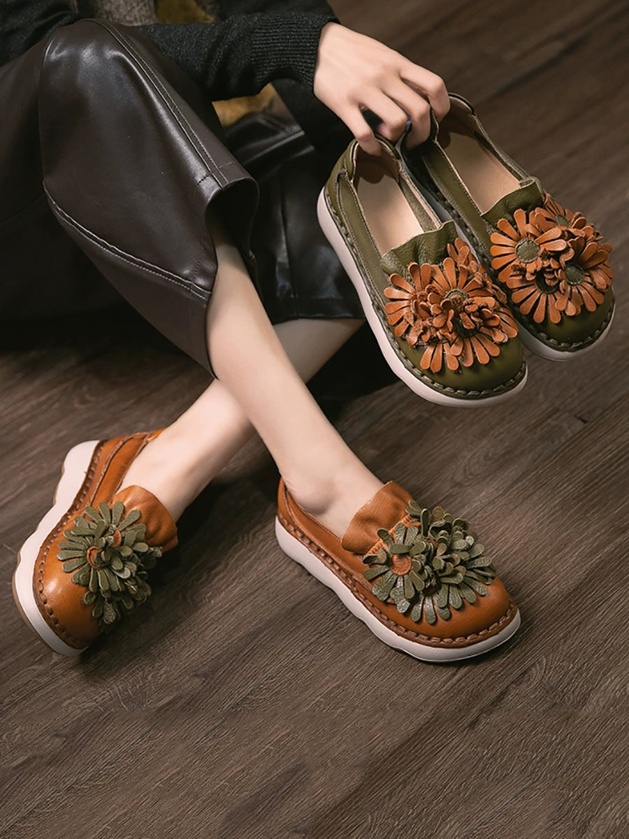 Damen Frühlingsschuhe aus echtem Leder mit Blumenmuster