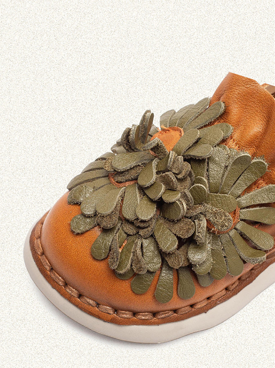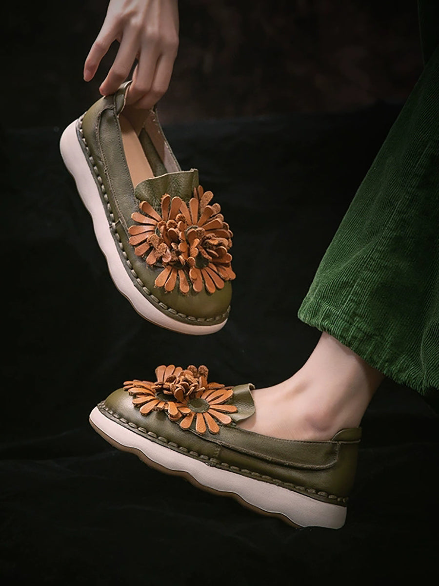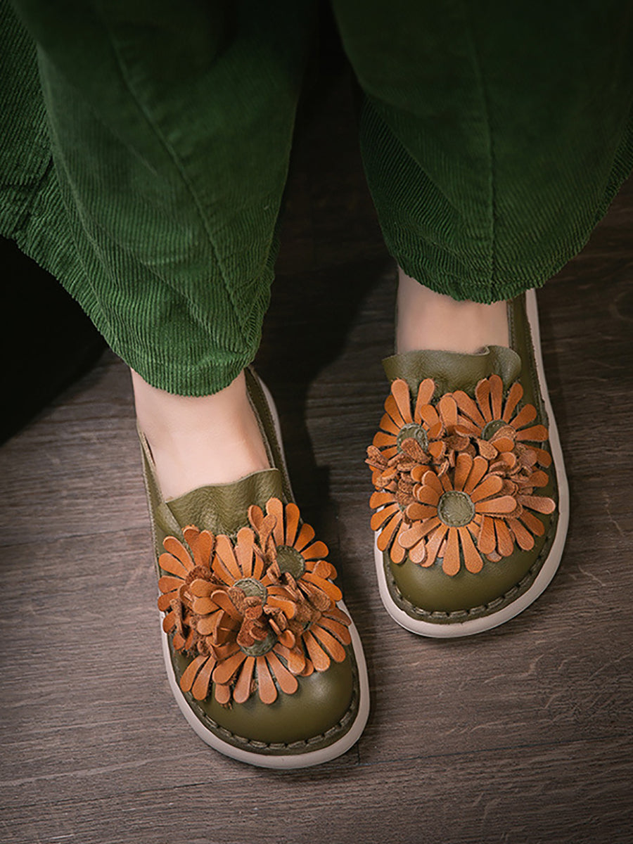 Damen Frühlingsschuhe aus echtem Leder mit Blumenmuster