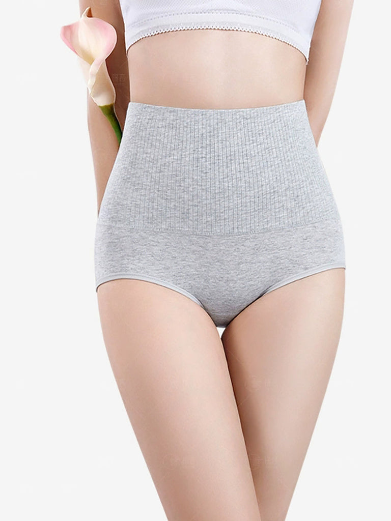 3-teiliges Set Damen-Unterwäsche aus Baumwolle in Unifarben mit hohem Bund