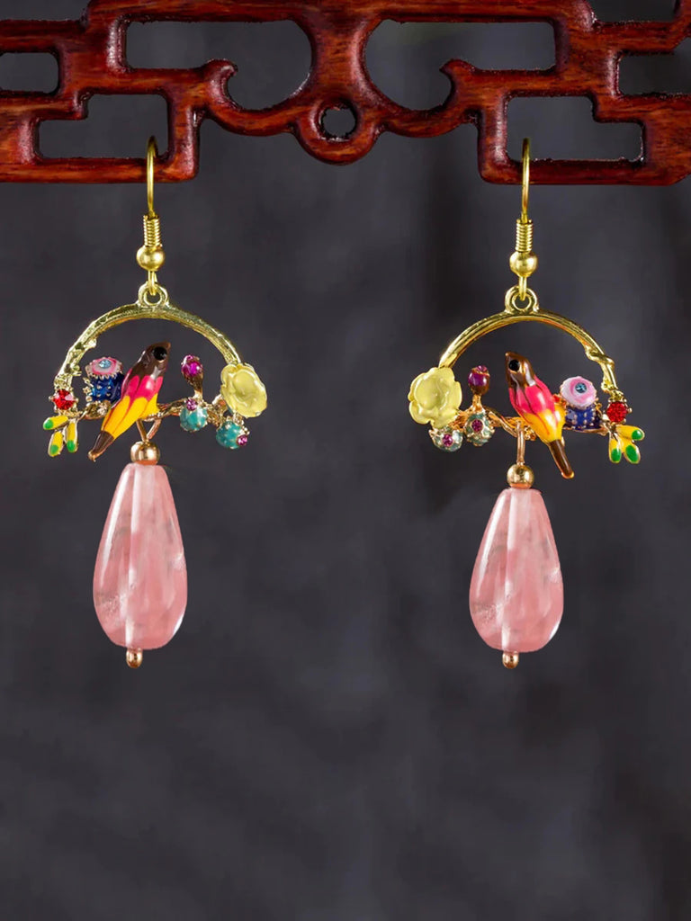 (2 Pairs )Retro Alloy Flower Red Agate Earrings