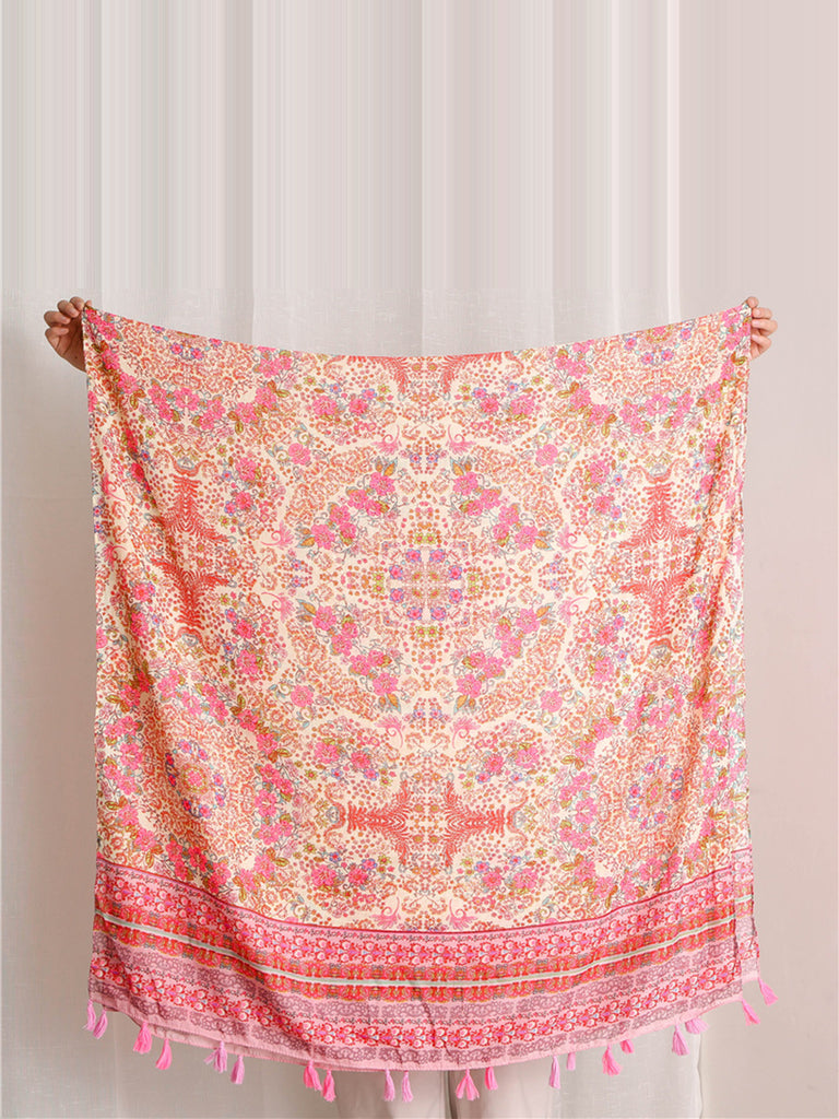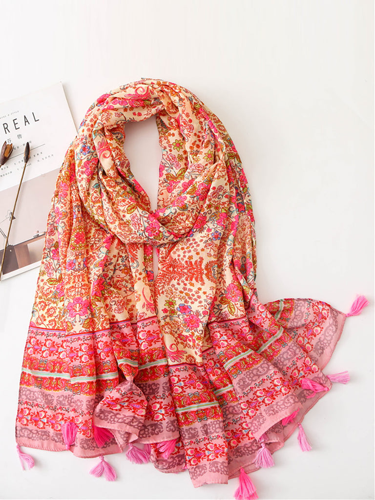Vintage Sunscreen Tasseled Printed Traveling Floral Shawl Scarf