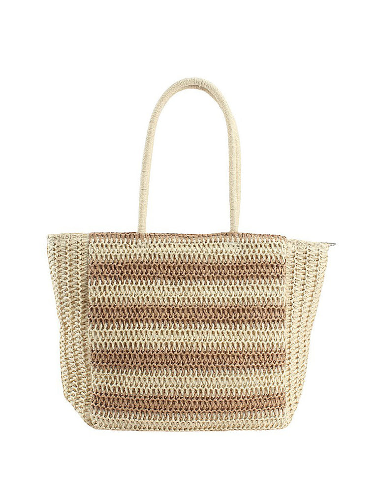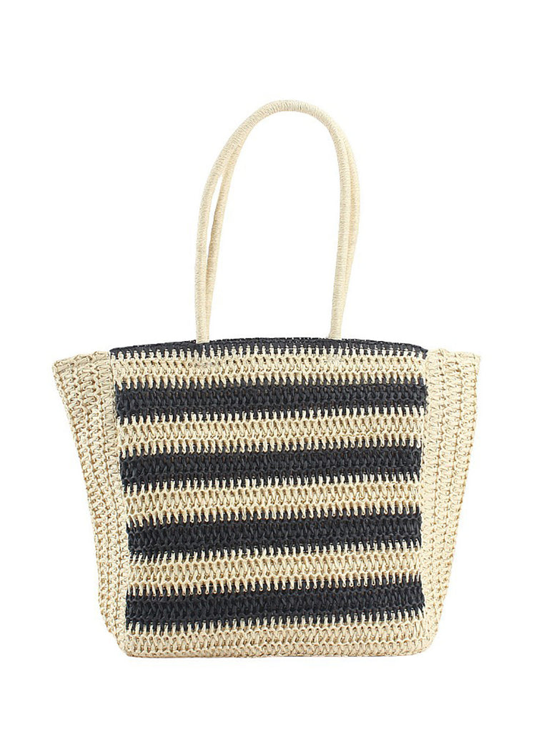 Women Fashion Colorblock Straw Weave Shoulder Bag