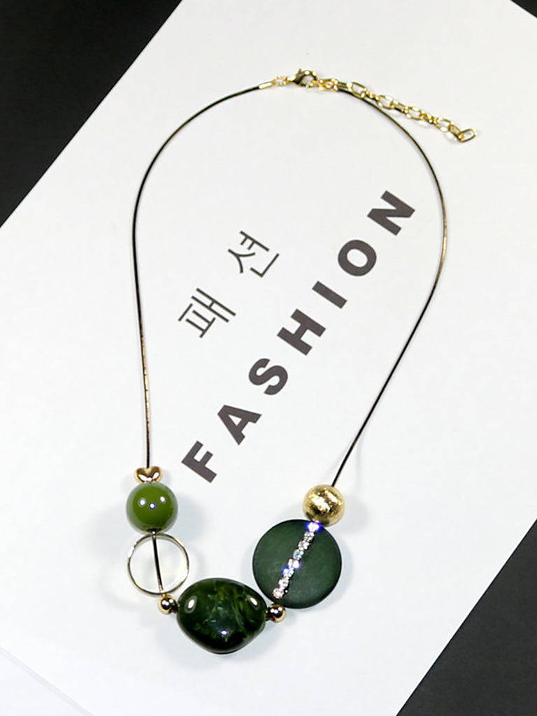 Women Vintage Wooden Bead Acrylic Alloy Necklace
