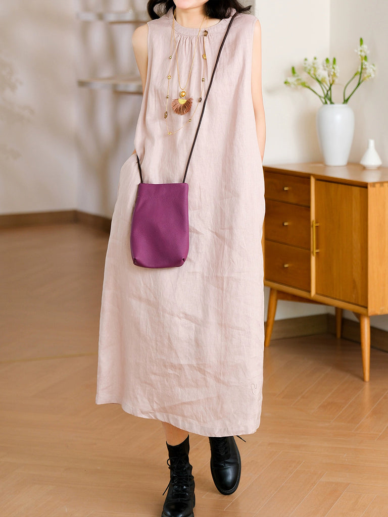Plus Size Women Summer Vintage Patchwork 100%Linen Vest Dress