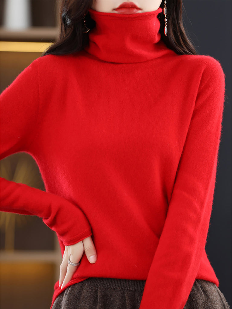 Women Winter Casual Pure Color Knitted Turtleneck Sweater