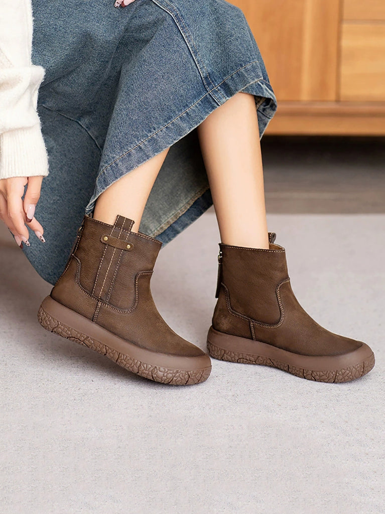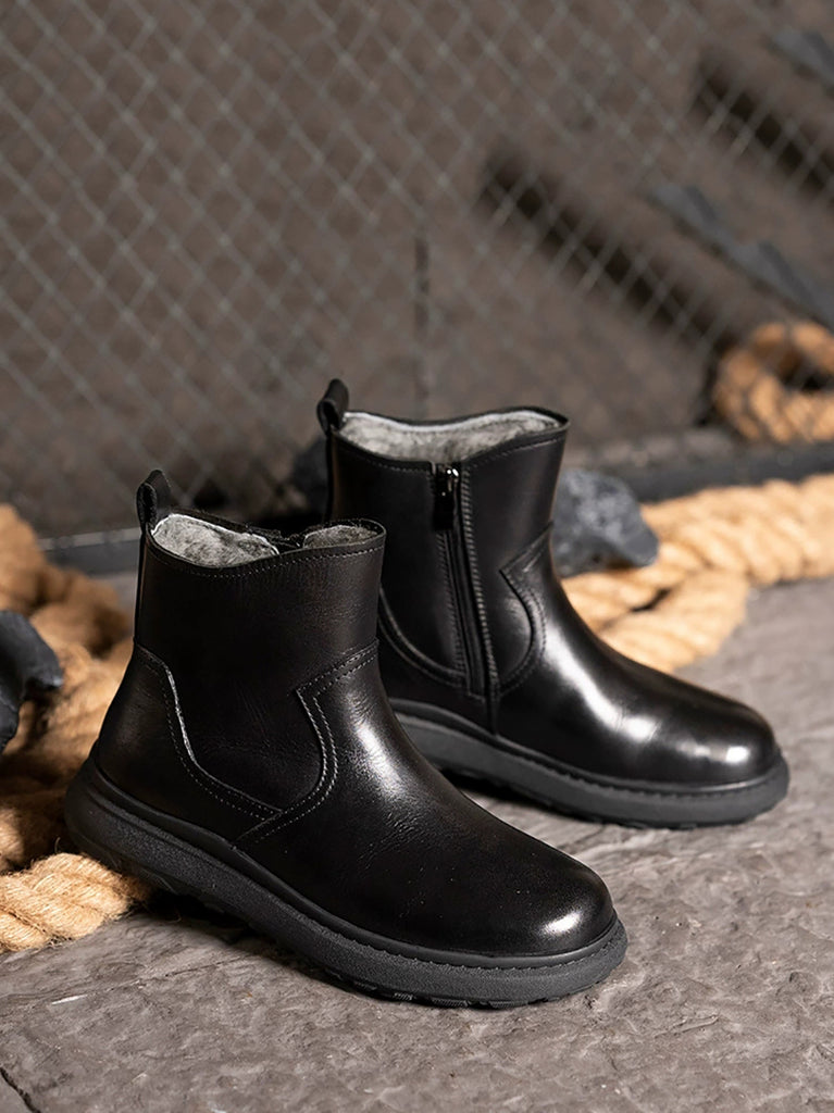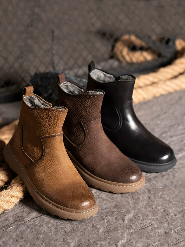 Women Winter Retro Leather Fleece-lined Ankle Boots