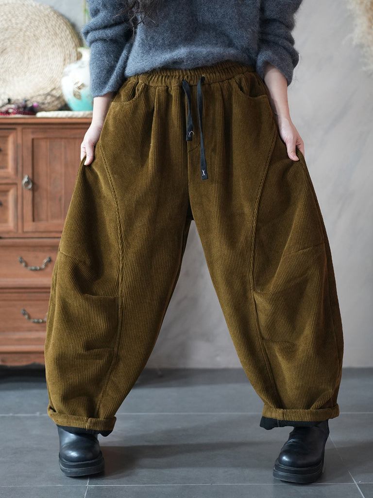 Women Winter Retro Pure Color Corduroy Harem Pants
