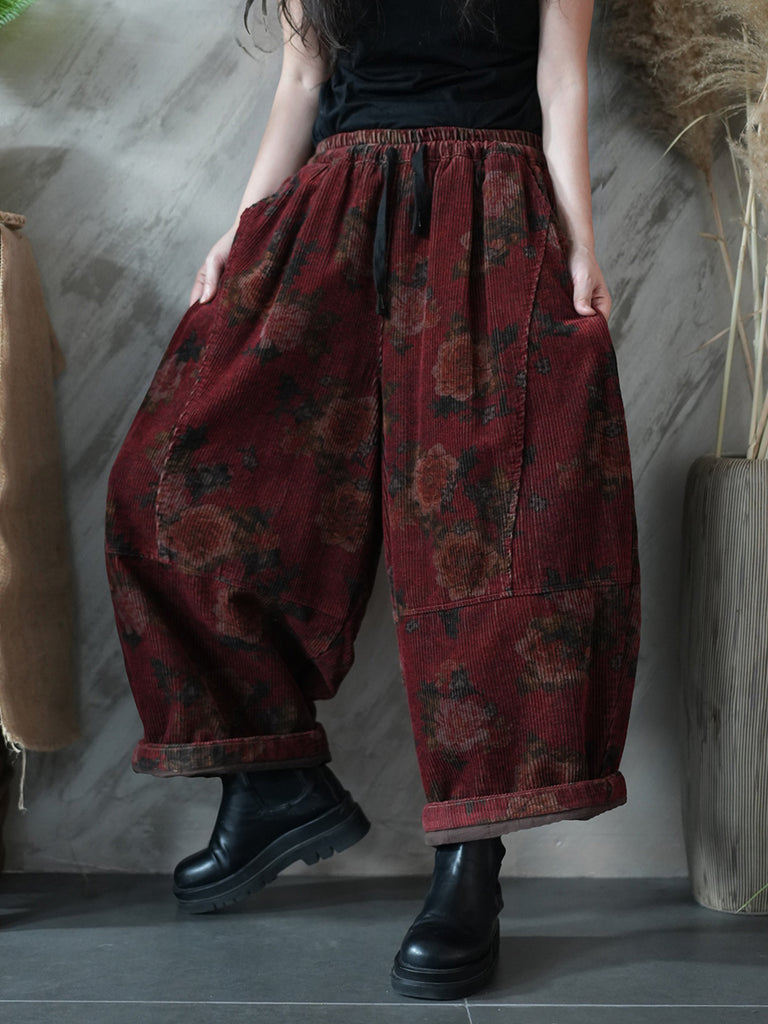 Women Winter Retro Flower Padded Harem Pants