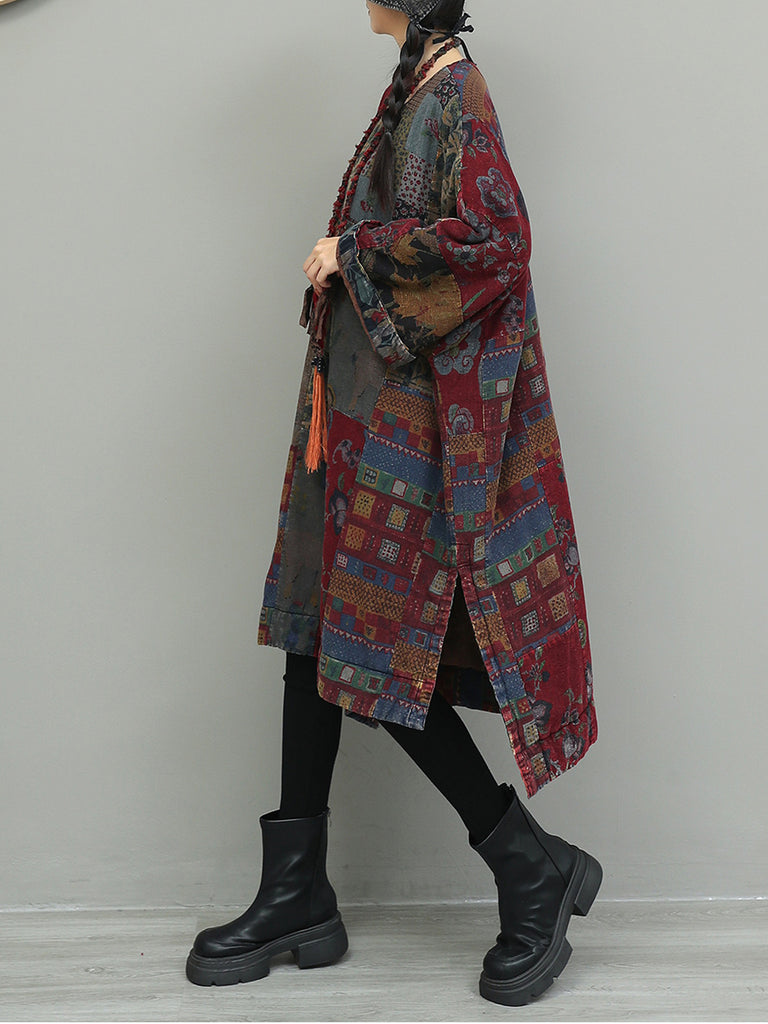 Women Autumn Flower Patchwork Cotton Dress
