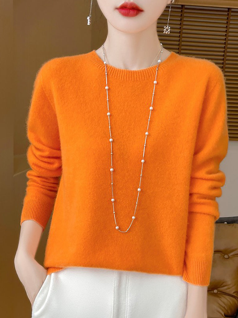 Women Winter Casual Pure Color O-Neck Wool Sweater