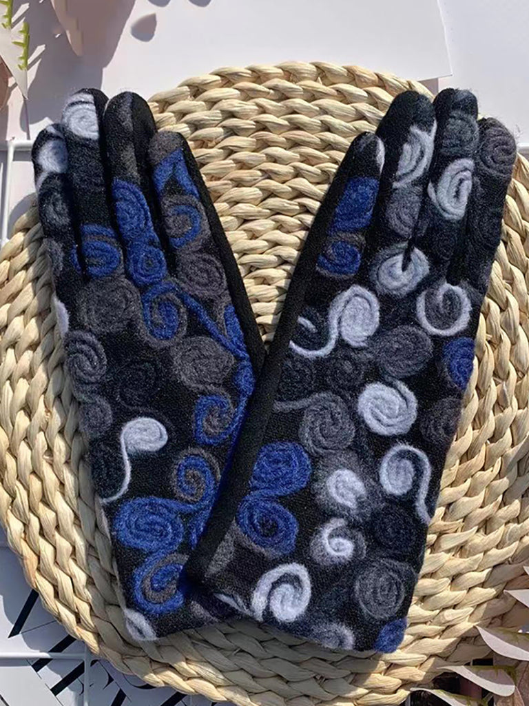 Women Retro Embroidery Warm Cycling Gloves