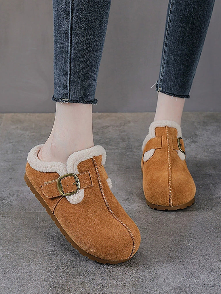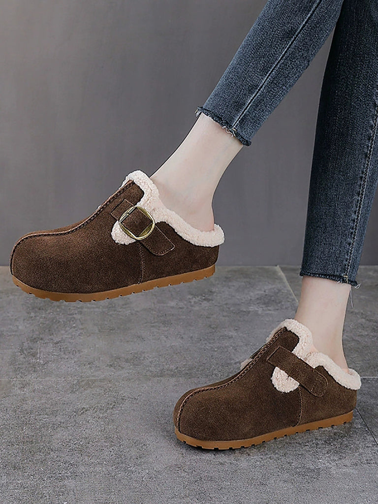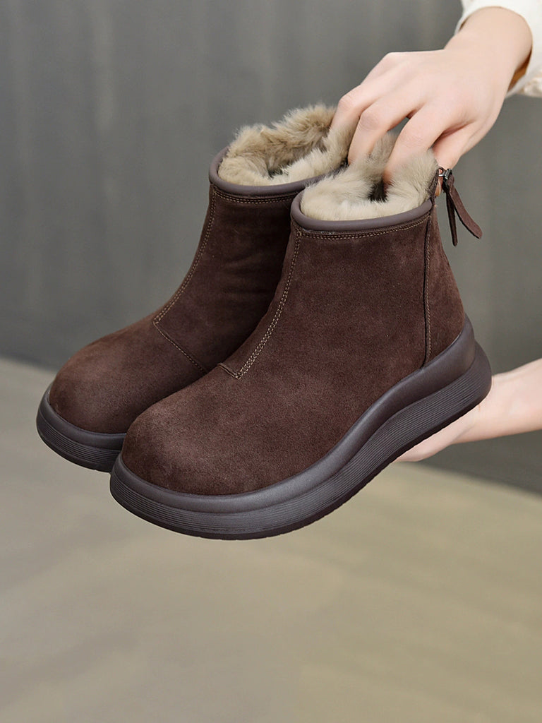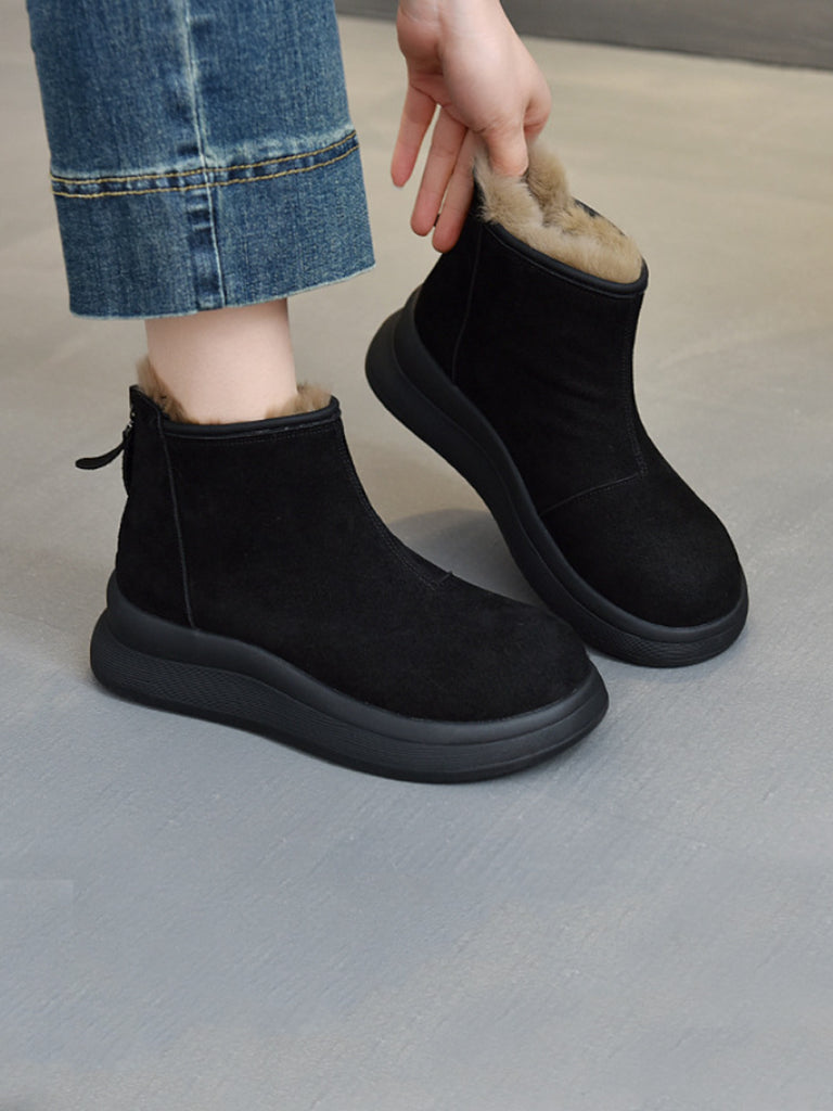 Women Winter Suded Leather Fleece-lined Flat Shoes