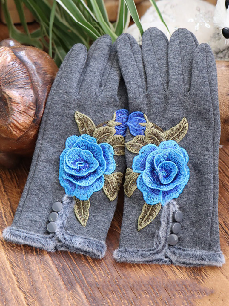 Women Ethnic Winter Embroidery Fleece-lined Gloves